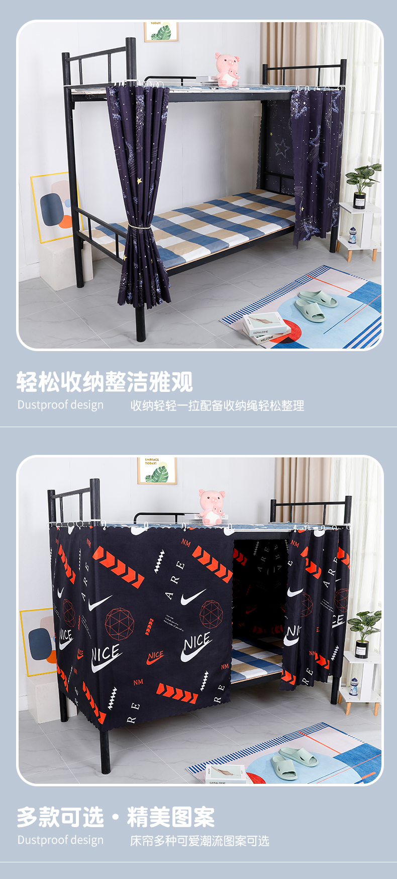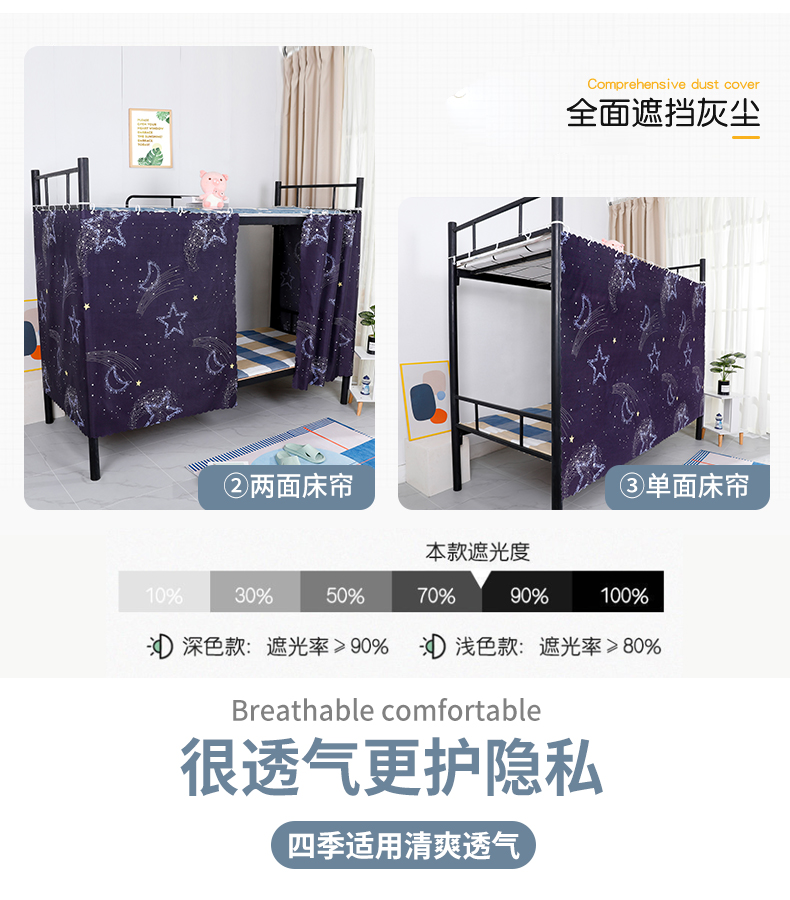 학생 기숙사 침대 커튼, 차광, 통기성 및 강화 이층 침대 책상 주변 천, 어두운 얼룩 방지 커튼, 침대 커튼스토어 가기