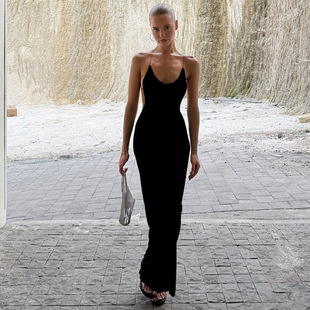 欧美风2026春夏季新款女装纯色性感大露背修身显身材吊带连衣裙女