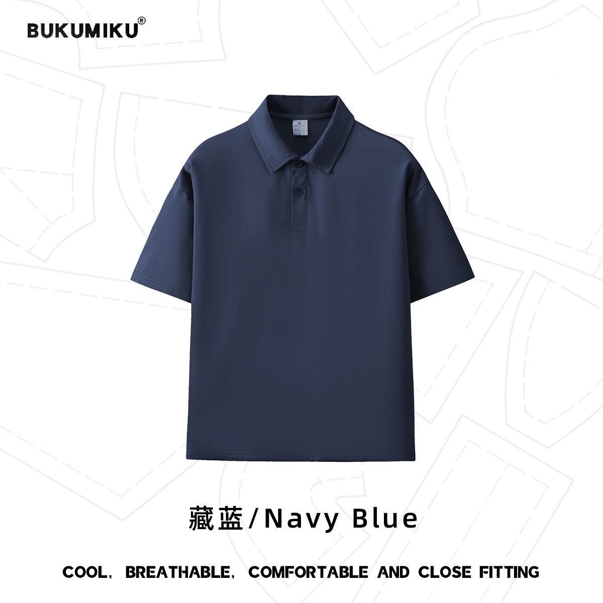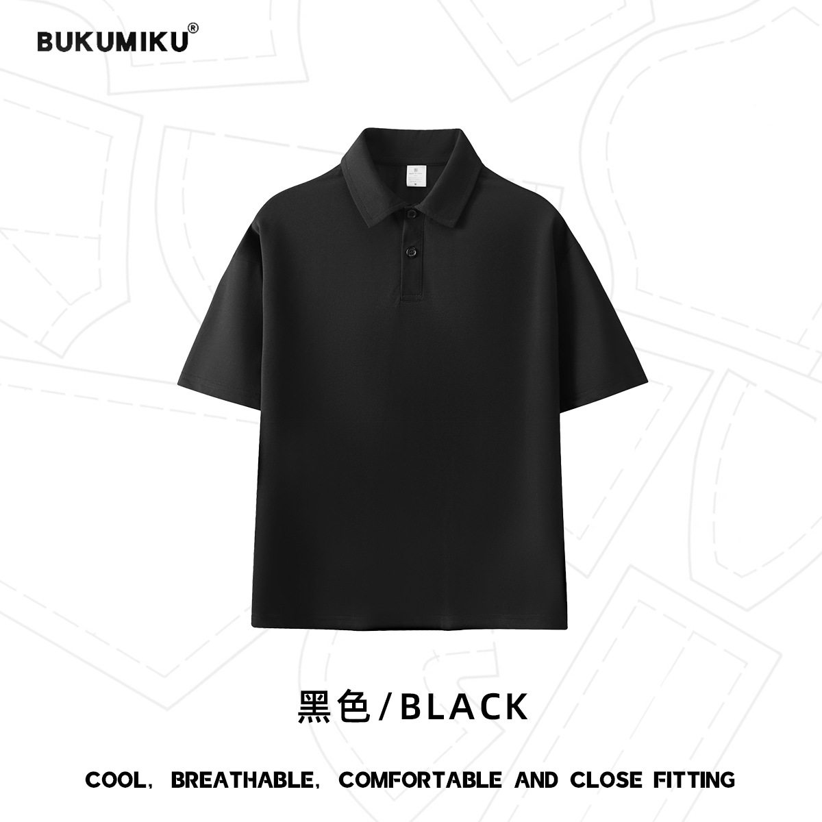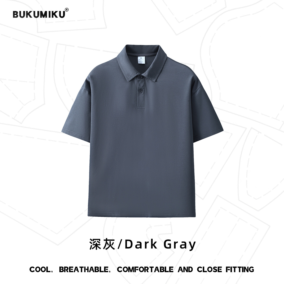 라이브 방송 공급 200 쿨 트렌디 브랜드 폴로 셔츠 맞춤형 남성 루즈 솔리드 컬러 일본식 오프 숄더 라펠 폴로 셔츠 티셔츠스토어 가기