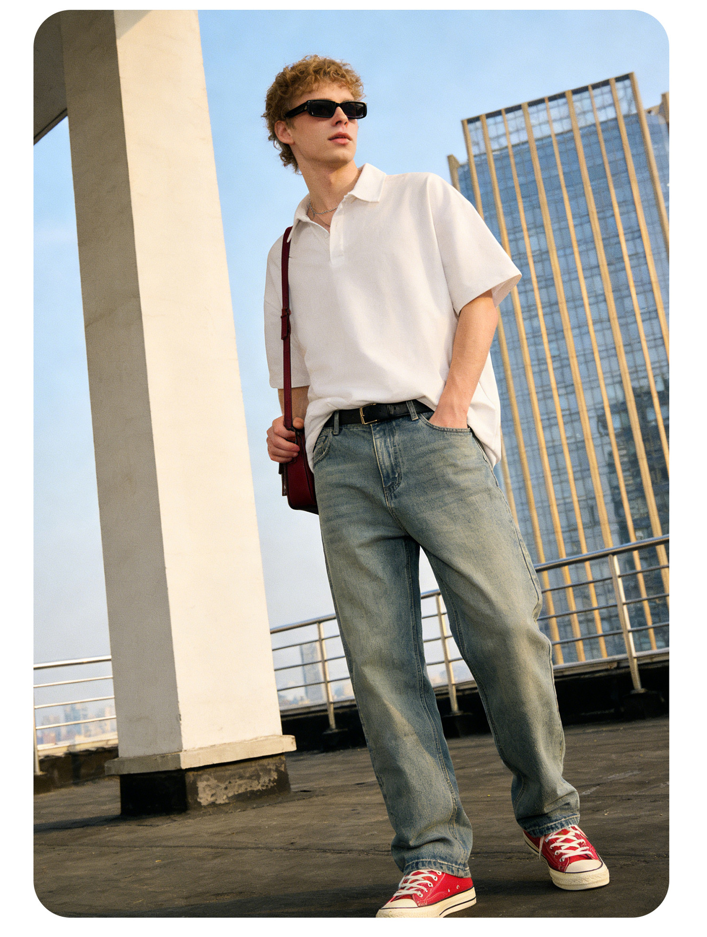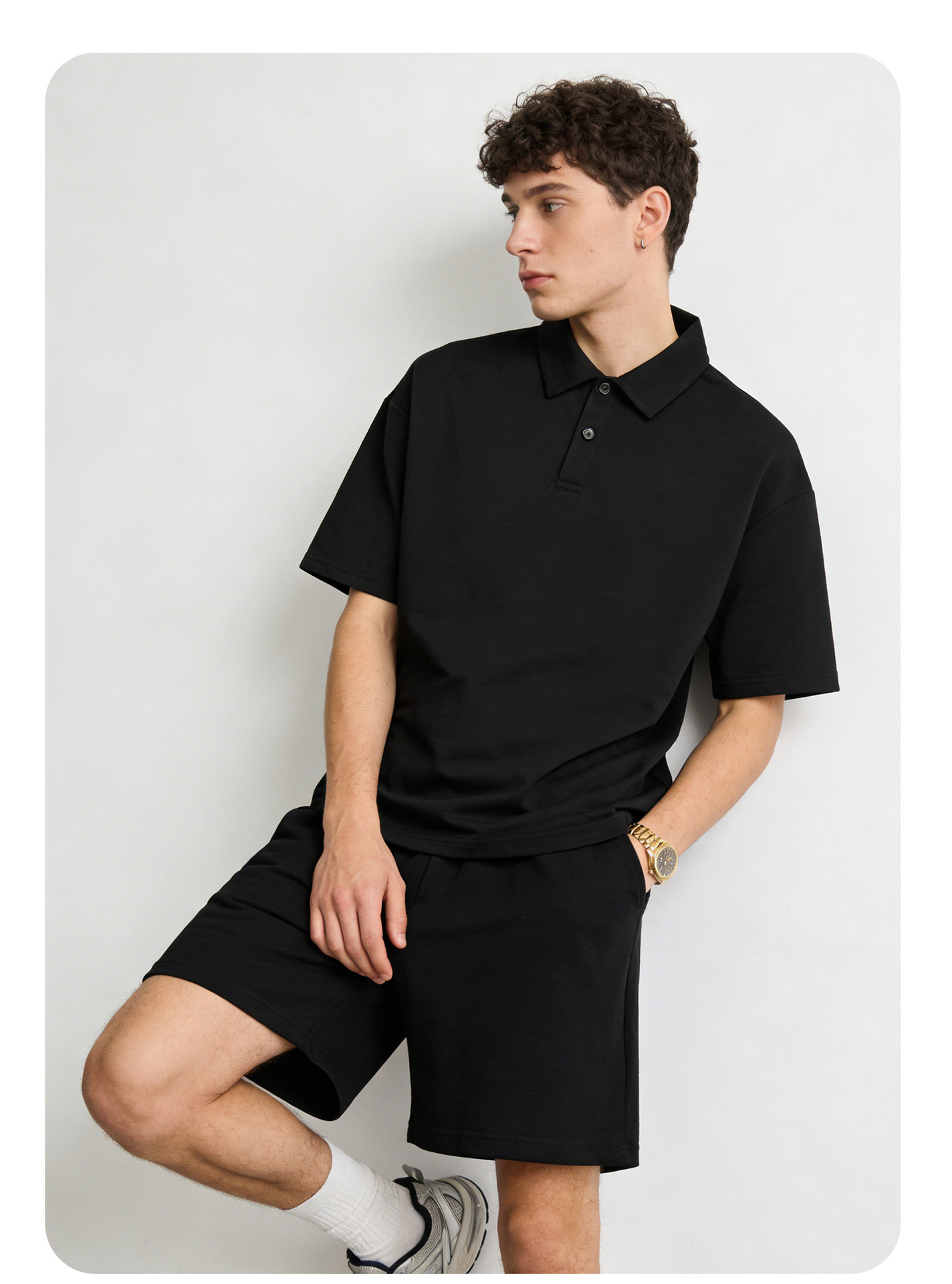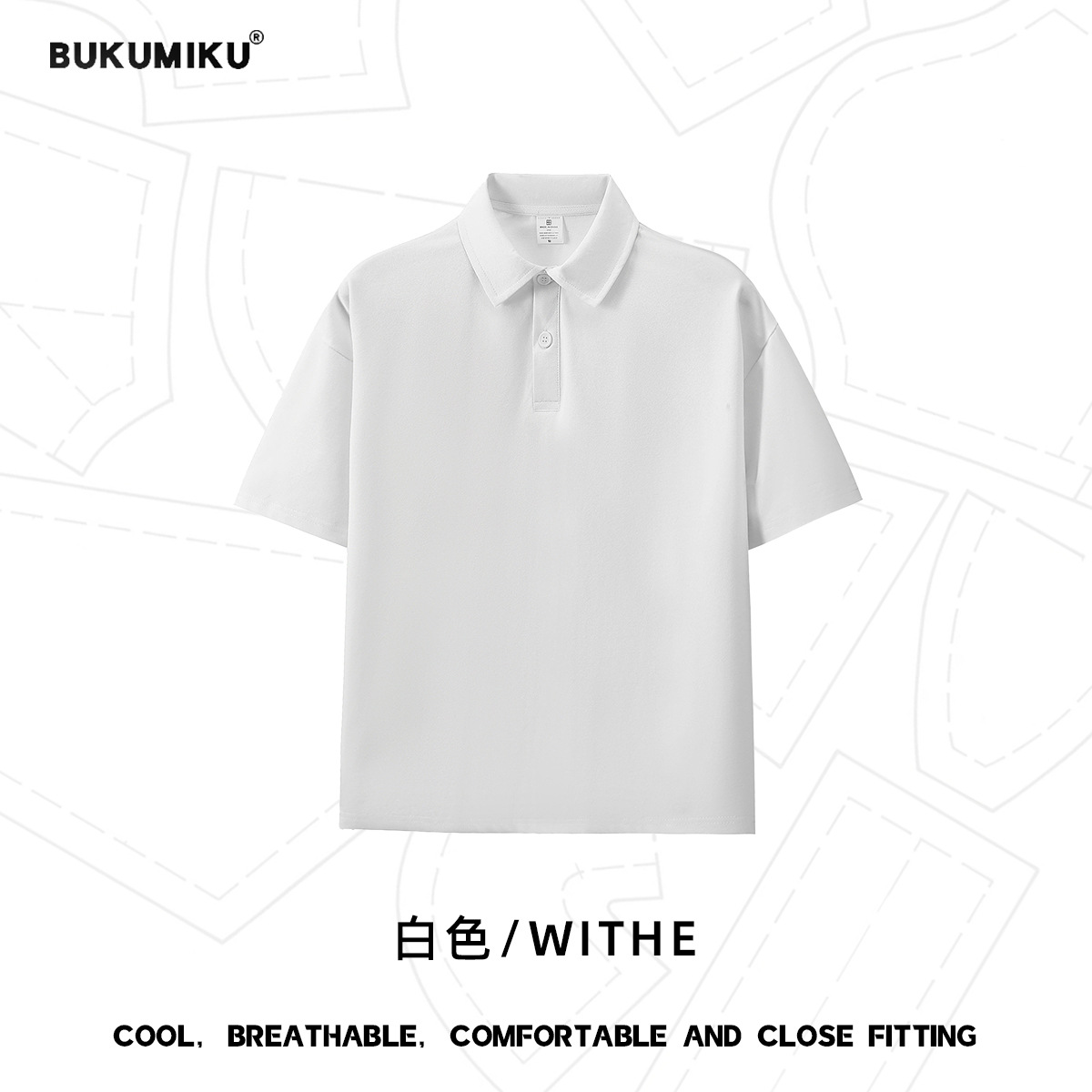 라이브 방송 공급 200 쿨 트렌디 브랜드 폴로 셔츠 맞춤형 남성 루즈 솔리드 컬러 일본식 오프 숄더 라펠 폴로 셔츠 티셔츠스토어 가기