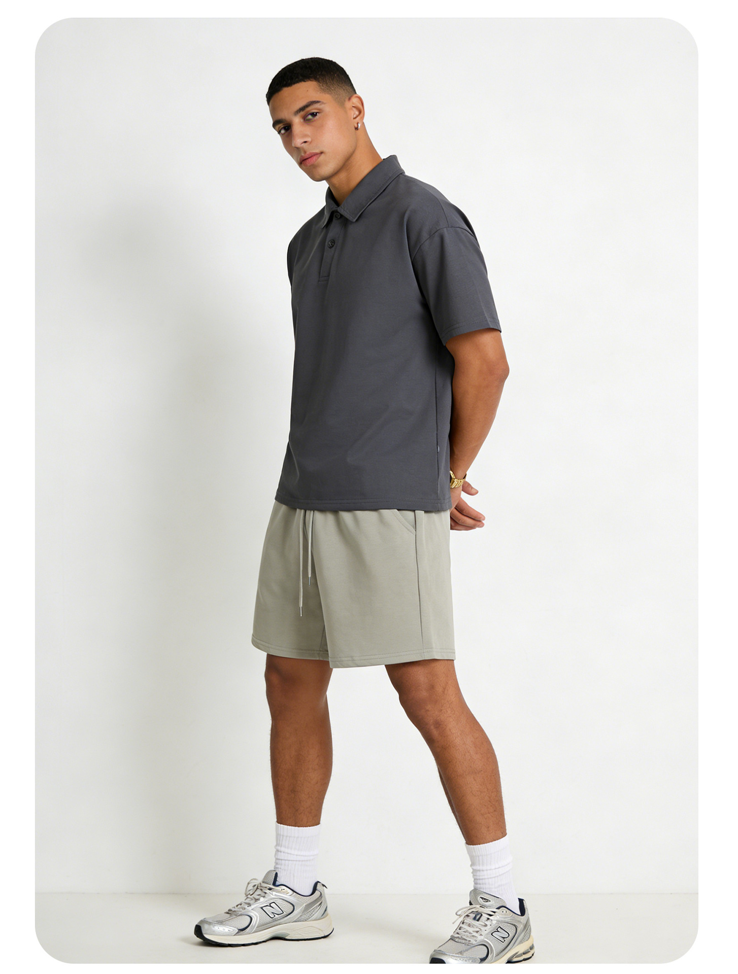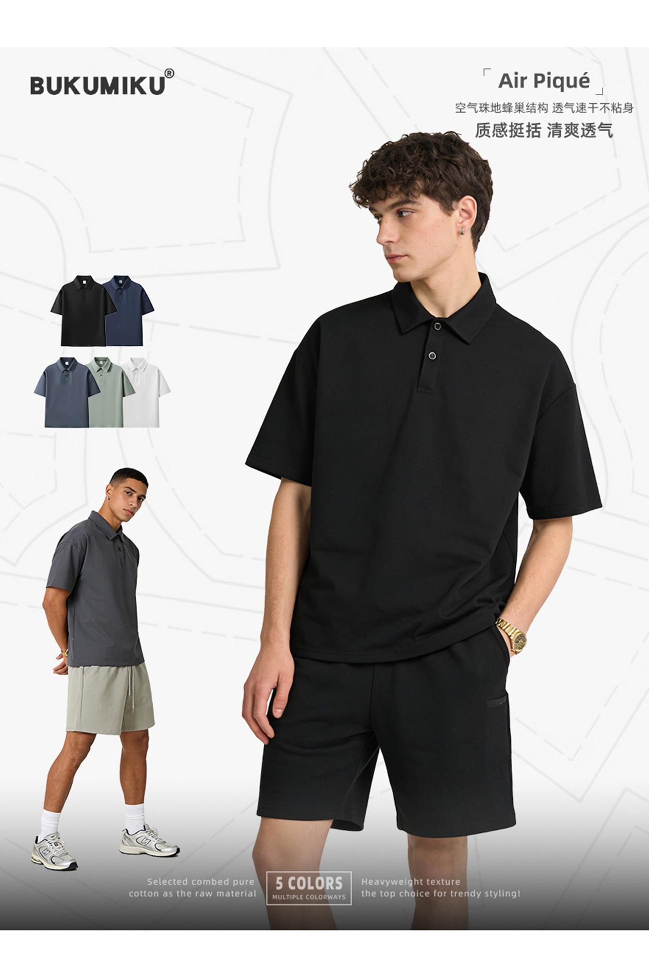 라이브 방송 공급 200 쿨 트렌디 브랜드 폴로 셔츠 맞춤형 남성 루즈 솔리드 컬러 일본식 오프 숄더 라펠 폴로 셔츠 티셔츠