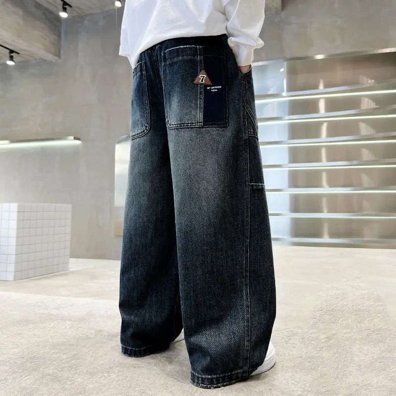 소년 바지 가을 느슨한 스트레이트 청바지 2025 새로운 중대형 아동 캐주얼 바지 봄과 가을 넓은 다리 아동복스토어 가기