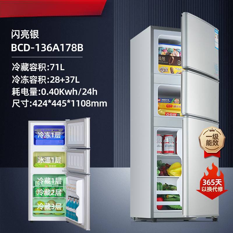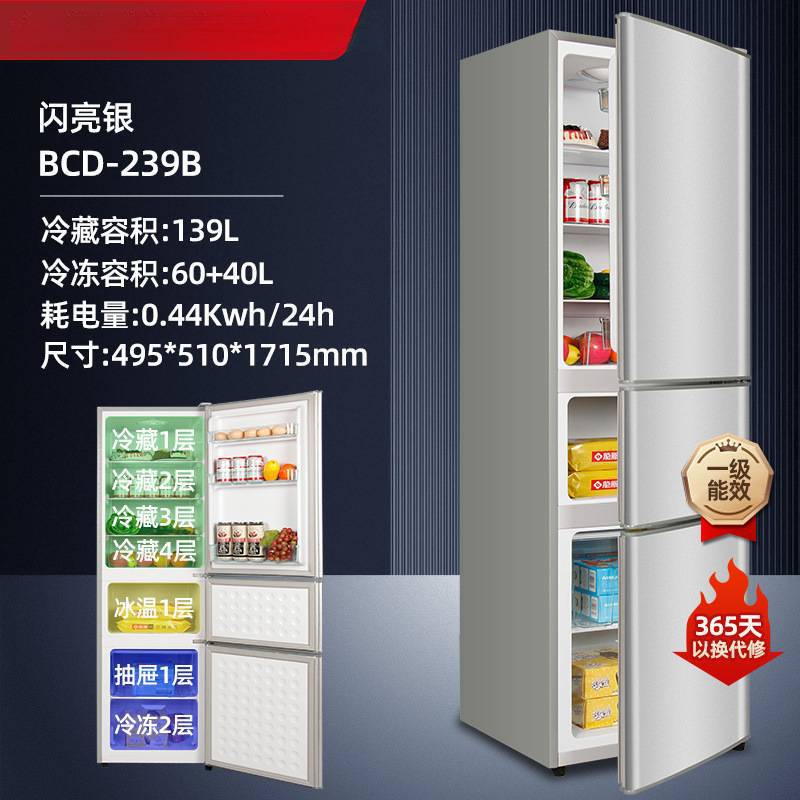 1급 에너지 효율 丨 206/239리터 3도어 가정용 냉장고 소형 에너지 절약형 2도어 3도어 냉장고
