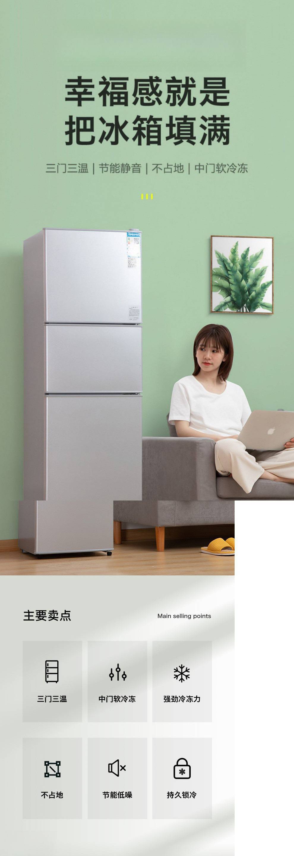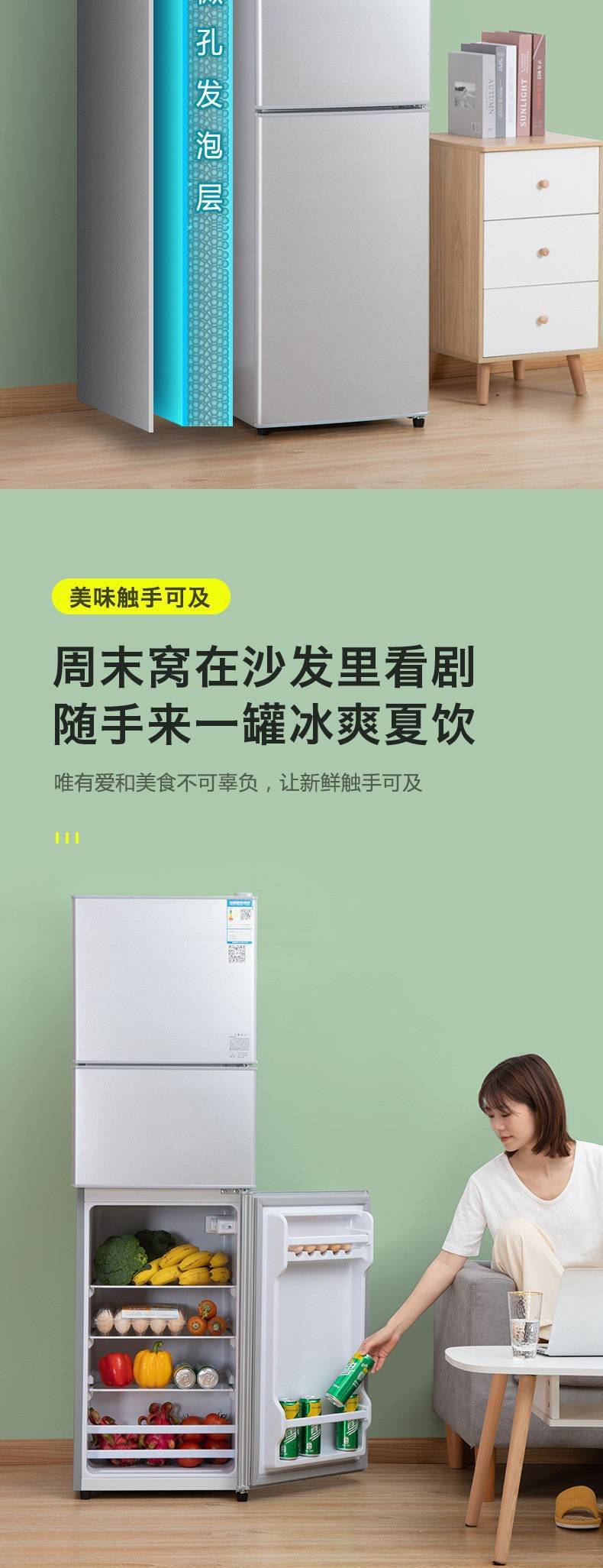 1급 에너지 효율 丨 206/239리터 3도어 가정용 냉장고 소형 에너지 절약형 2도어 3도어 냉장고스토어 가기