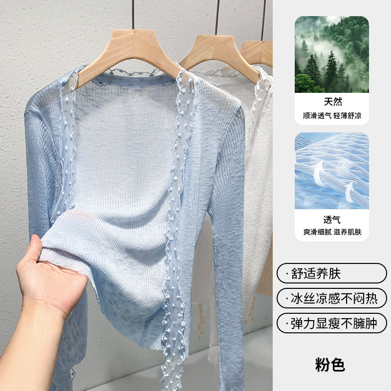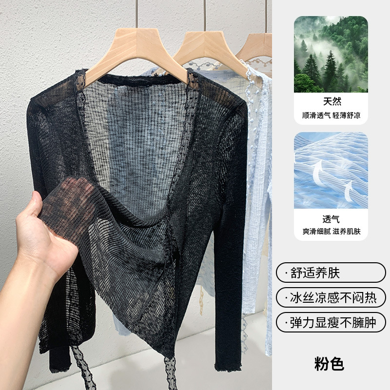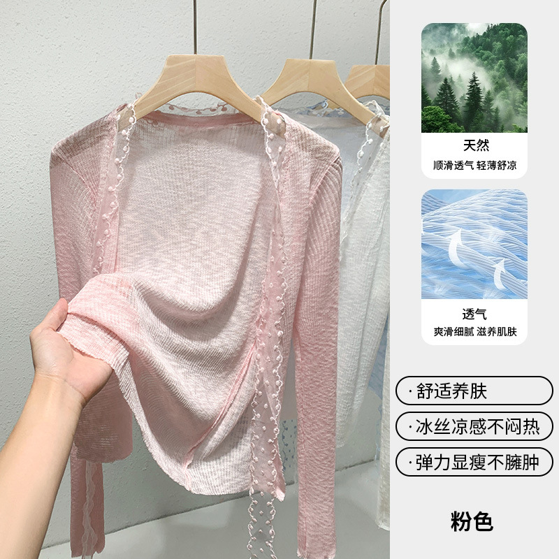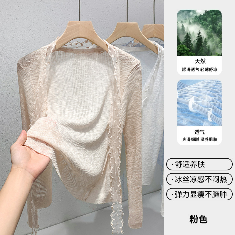여성용 니트 가디건 2025 신상 여성용 브이넥 레이스 스플리싱 숄 탑 자외선 차단 셔츠 짧은 긴팔 탑스토어 가기