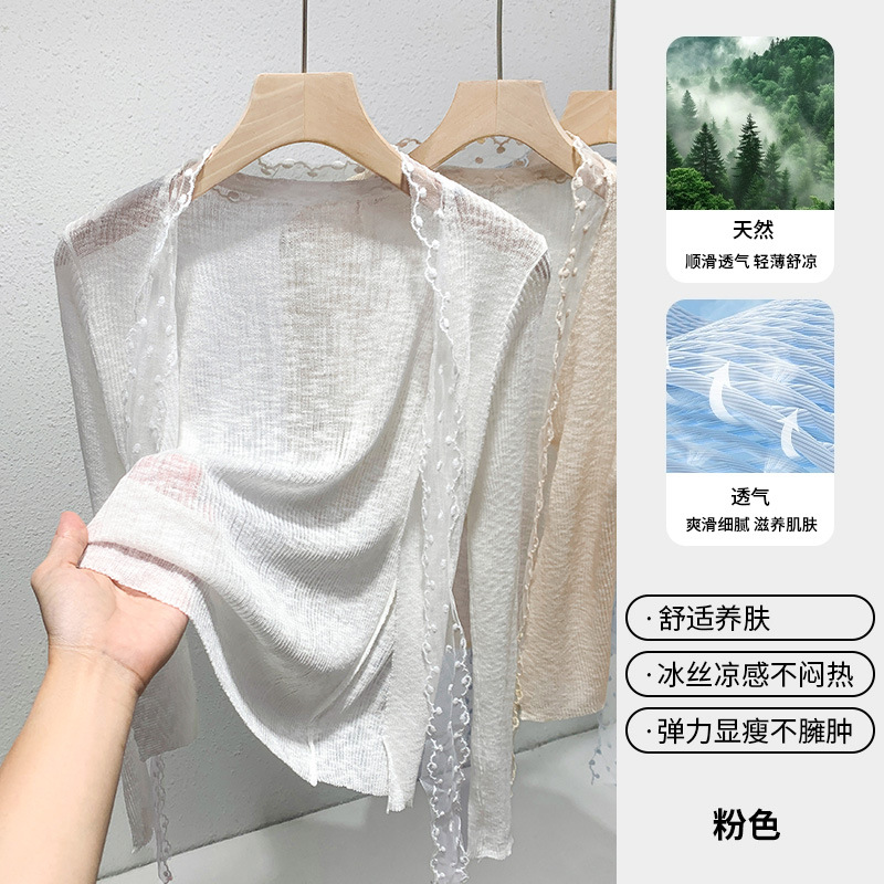 여성용 니트 가디건 2025 신상 여성용 브이넥 레이스 스플리싱 숄 탑 자외선 차단 셔츠 짧은 긴팔 탑