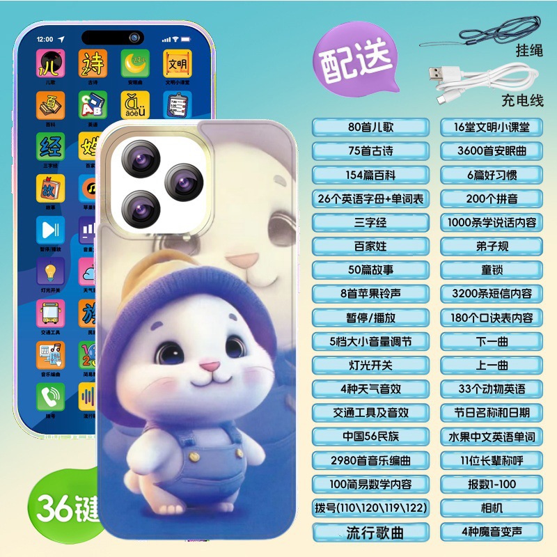 충전식 스토리 머신 아기 시뮬레이션 전화 터치 스크린 아기 교육 조기 교육 기계 모델 어린이 휴대 전화 장난감스토어 가기