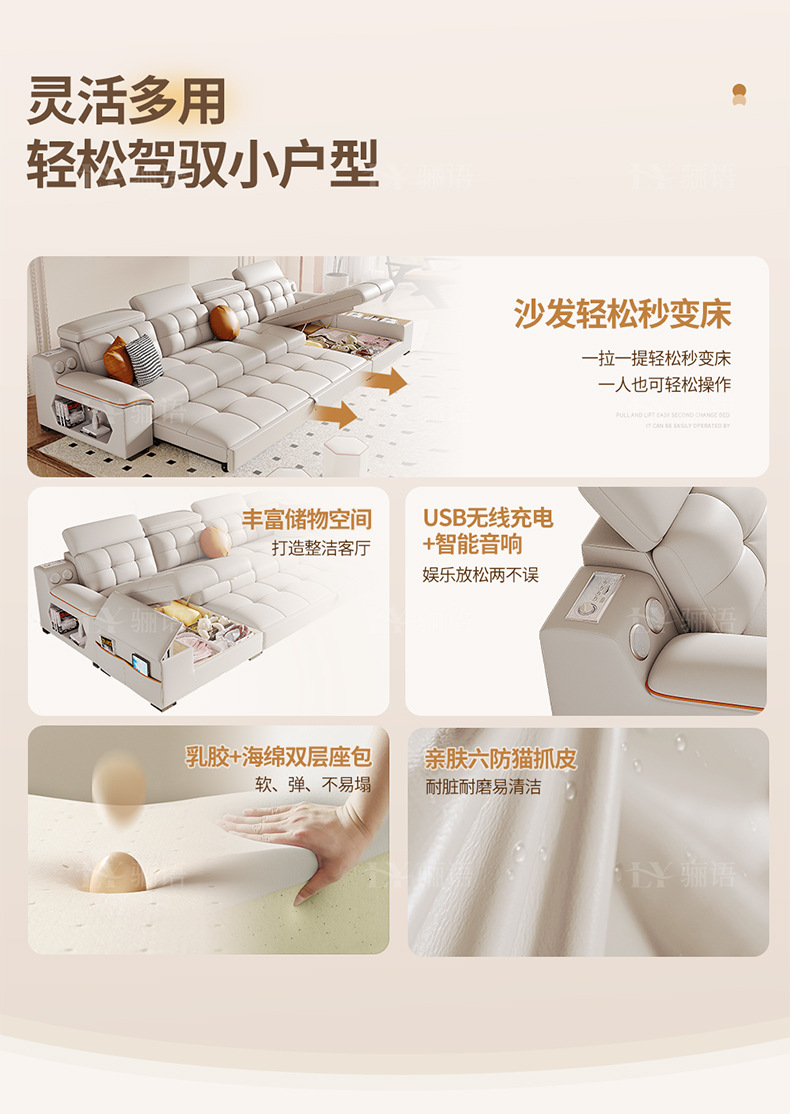 고양이 발톱 가죽 소파 베드 접이식 이중 목적 소형 침대 다기능 개폐식 풀 아웃 스토리지 기술 패브릭 소파스토어 가기