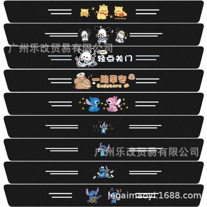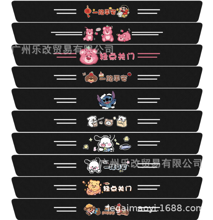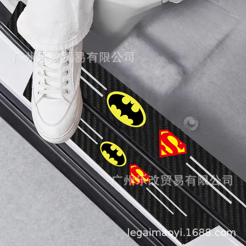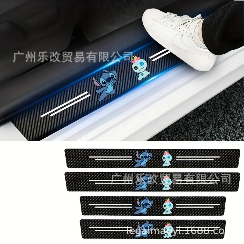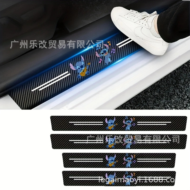 자동차 만화 범용 도어 스커프 스트립 가죽 탄소 섬유 블랙 도어 스커프 스트립 충돌 방지 스트립 도어 안티 스텝 스티커 리어 범퍼 장식 스티커스토어 가기