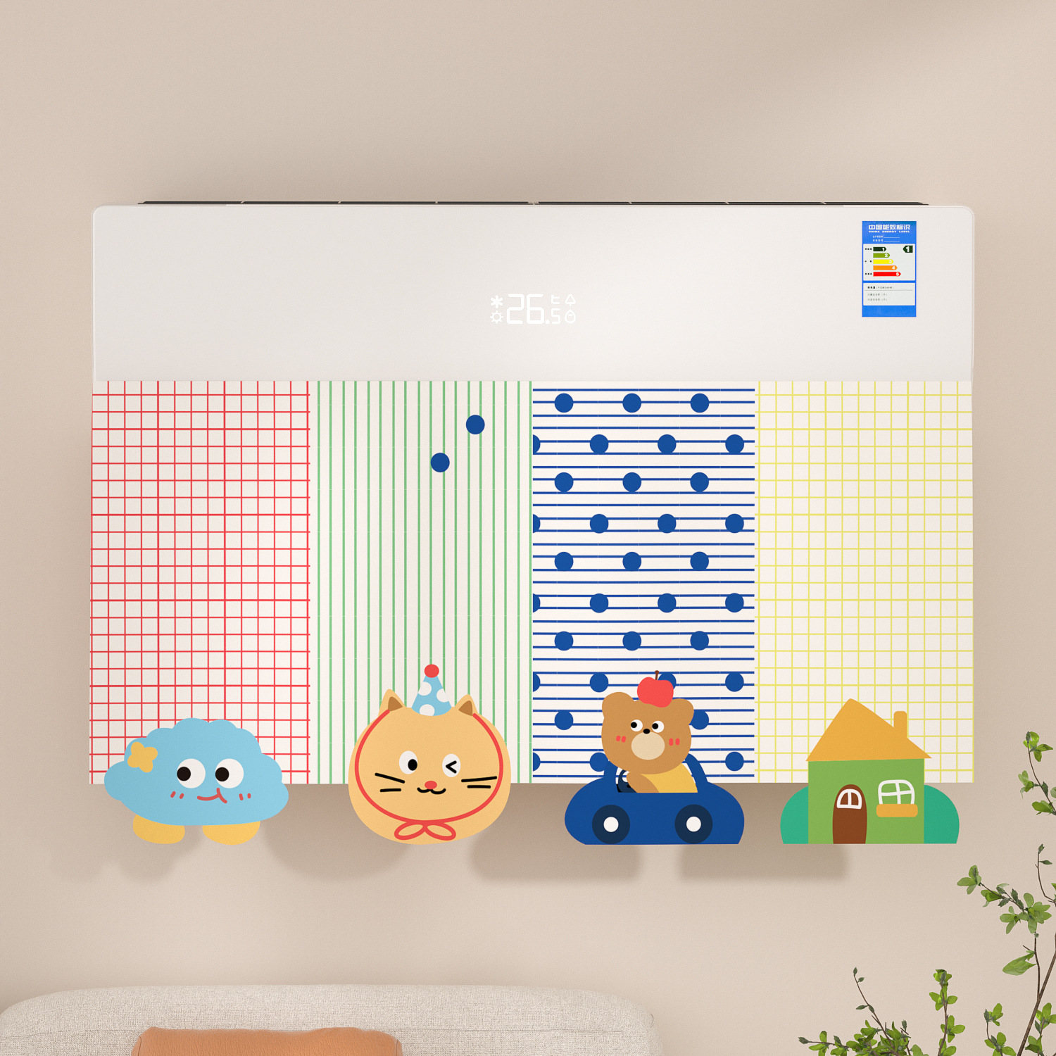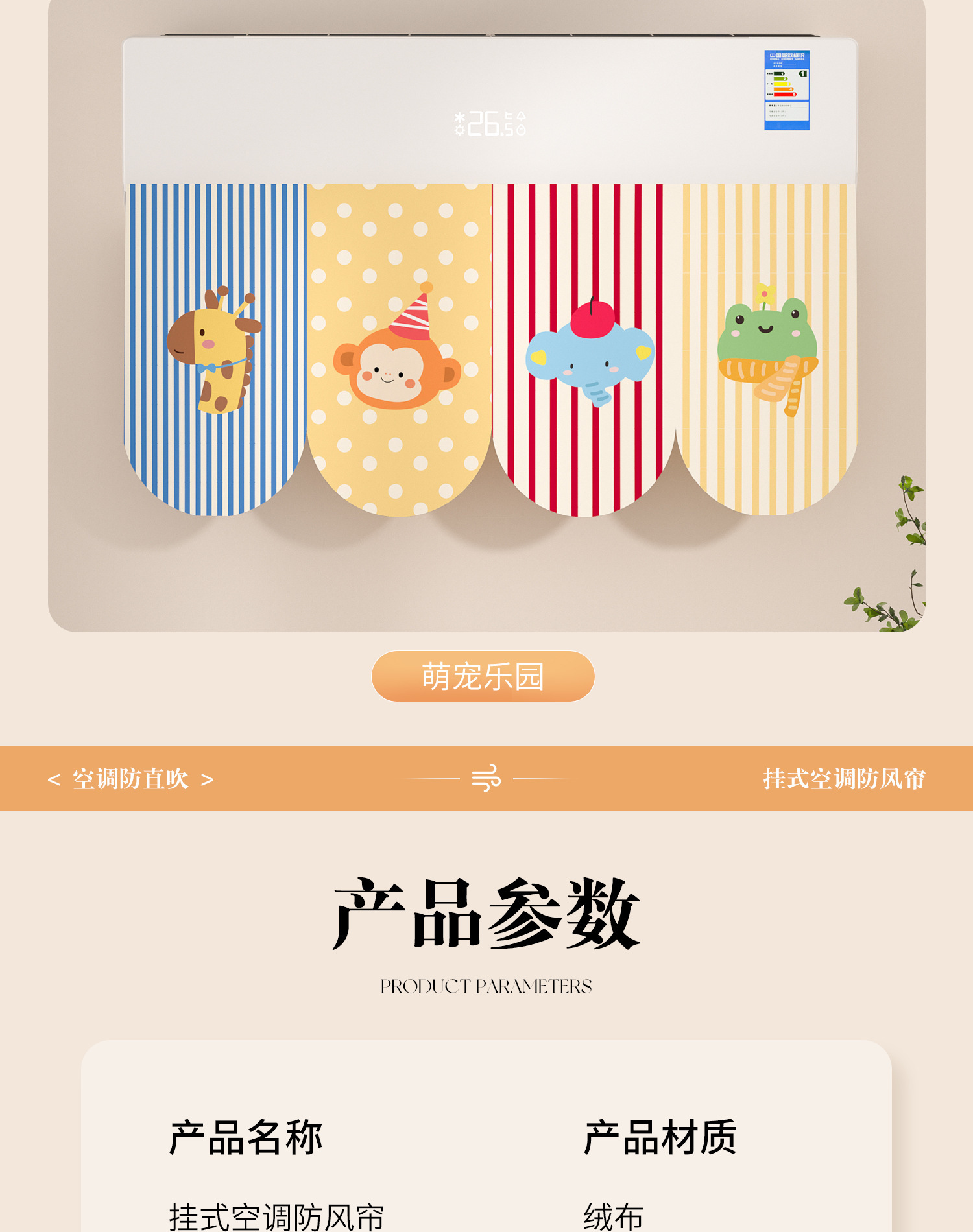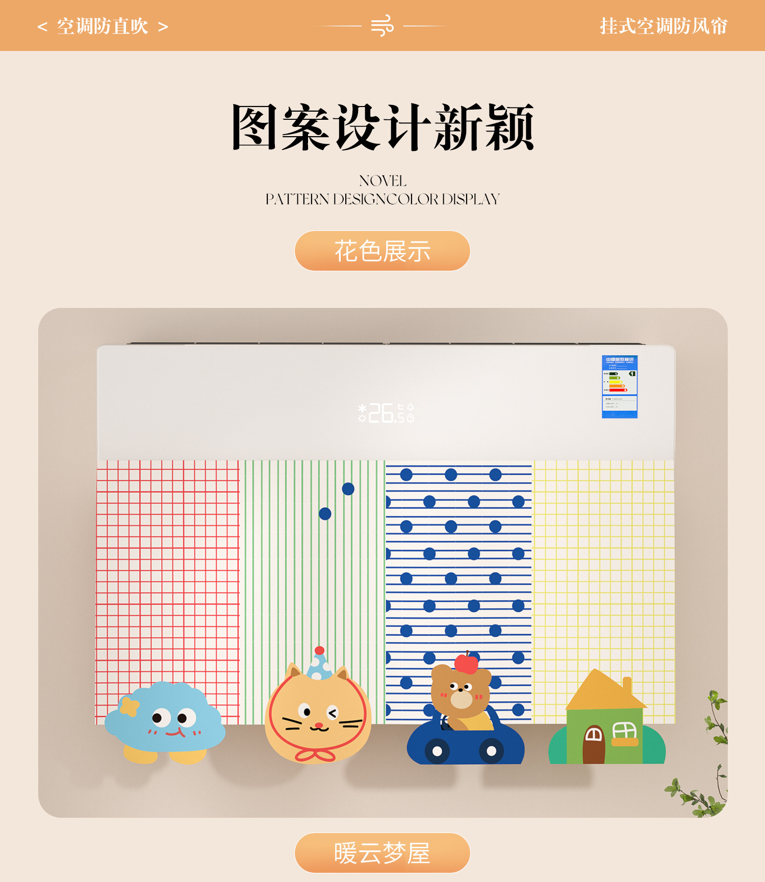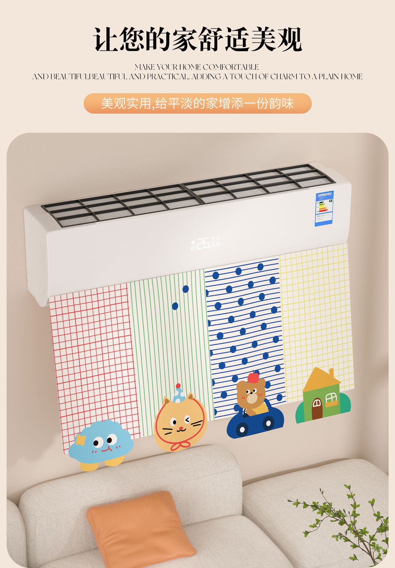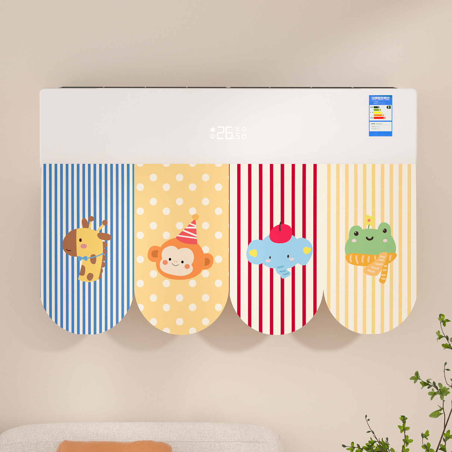 에어컨 바람막이 커튼, 직풍 방지 커튼, 펀치 없는 벽걸이형 범용 바람막이 커튼, 벨크로 에어벤트 커튼