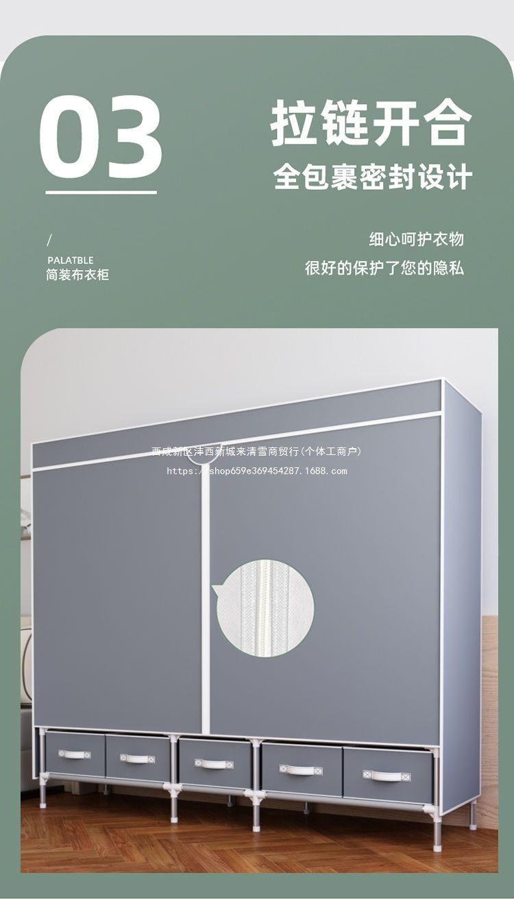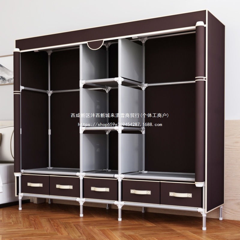 간단한 옷장, 가정용 침실 천 옷장, 대용량 임대실 방진 보관 걸이 옷장 강철 파이프, 강력하고 내구성