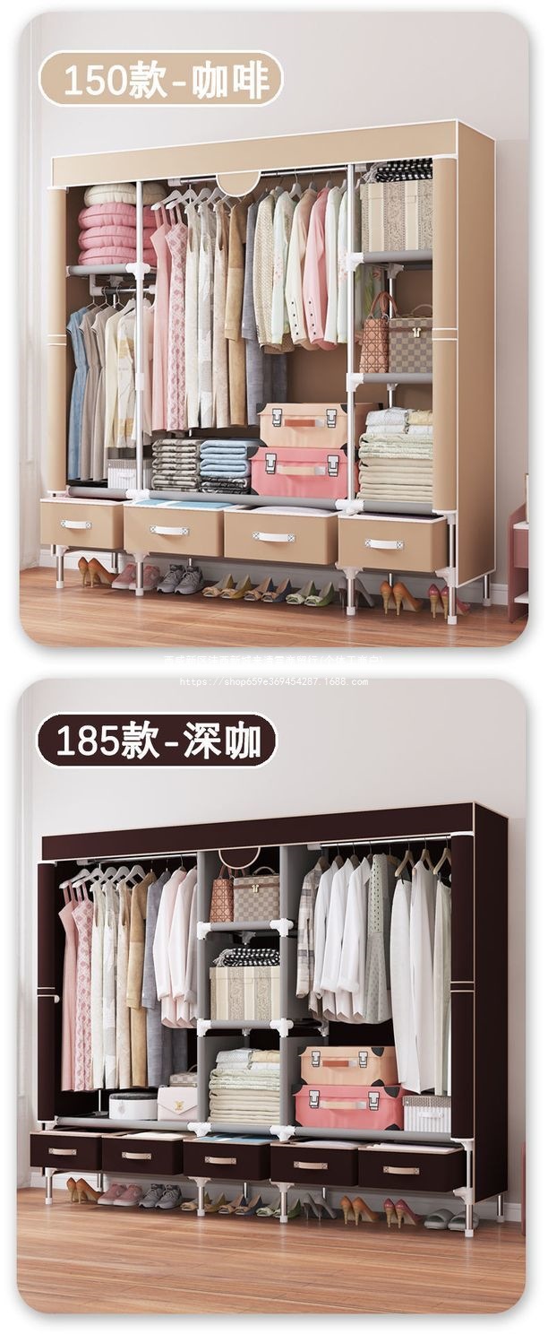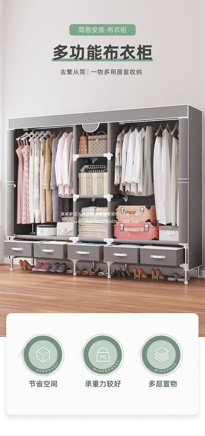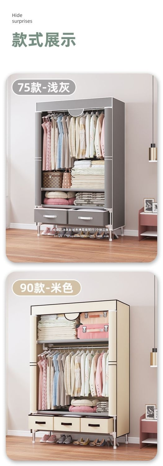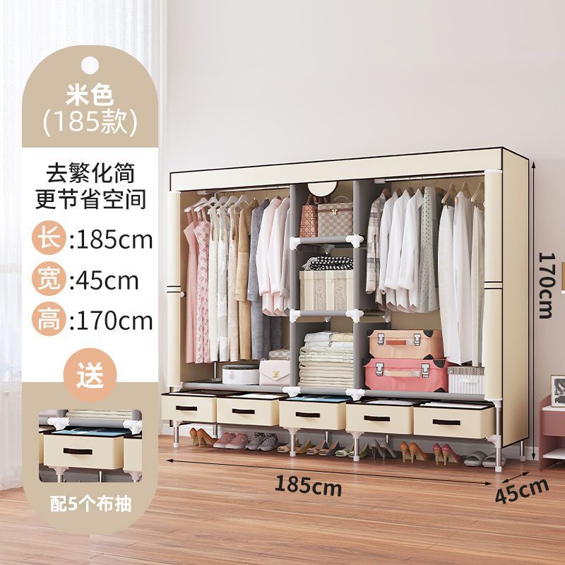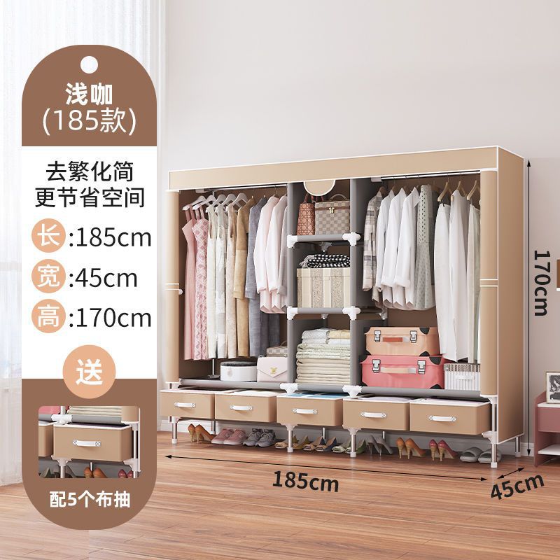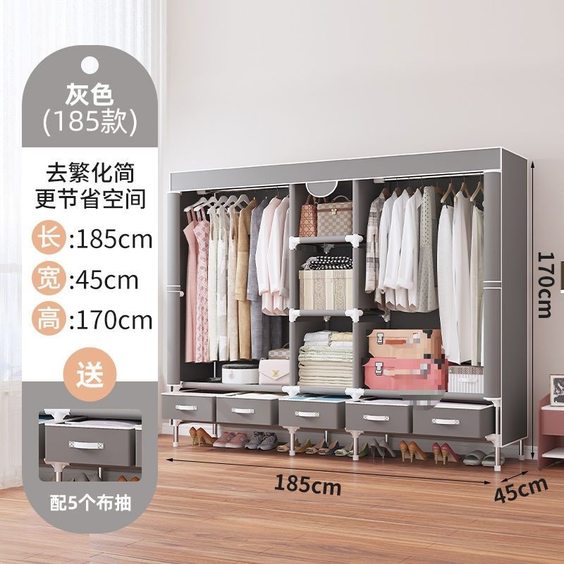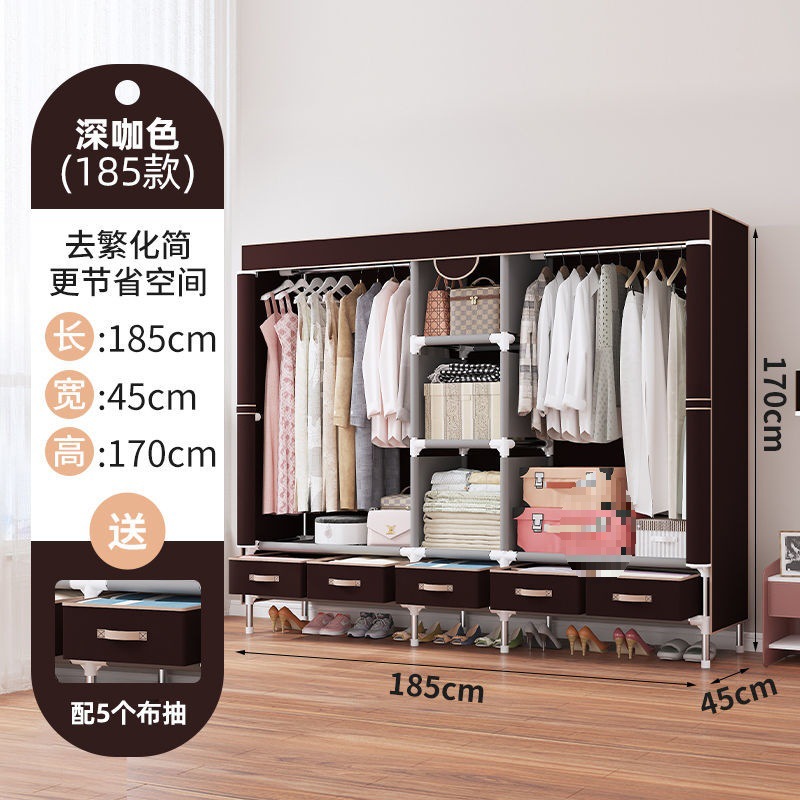 간단한 옷장, 가정용 침실 천 옷장, 대용량 임대실 방진 보관 걸이 옷장 강철 파이프, 강력하고 내구성스토어 가기