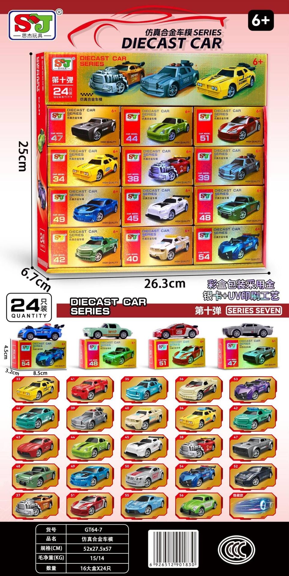 • GT64-7 합금 자동차 모델 1개(디스플레이 상자당 24개)