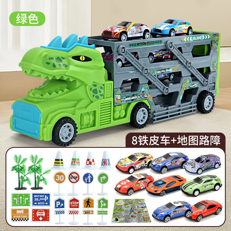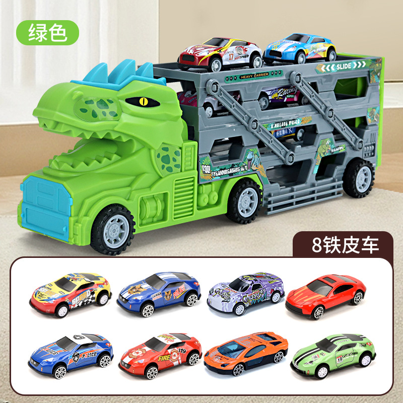• 접이식 컨테이너 트럭 공룡 그린(풀백 트롤리 8개 포함)