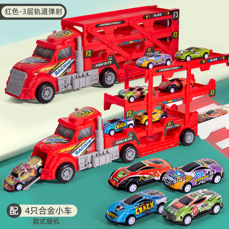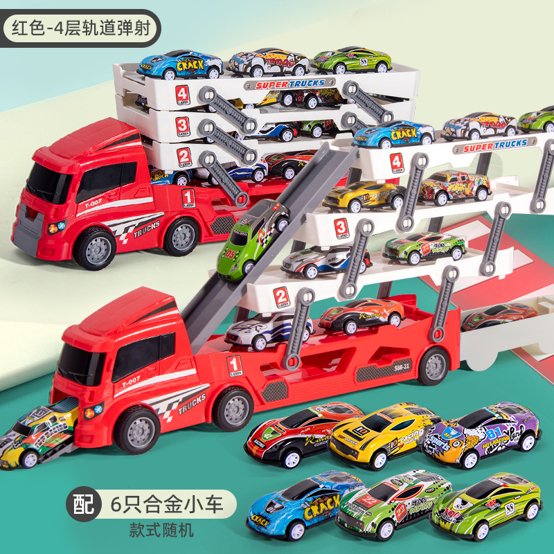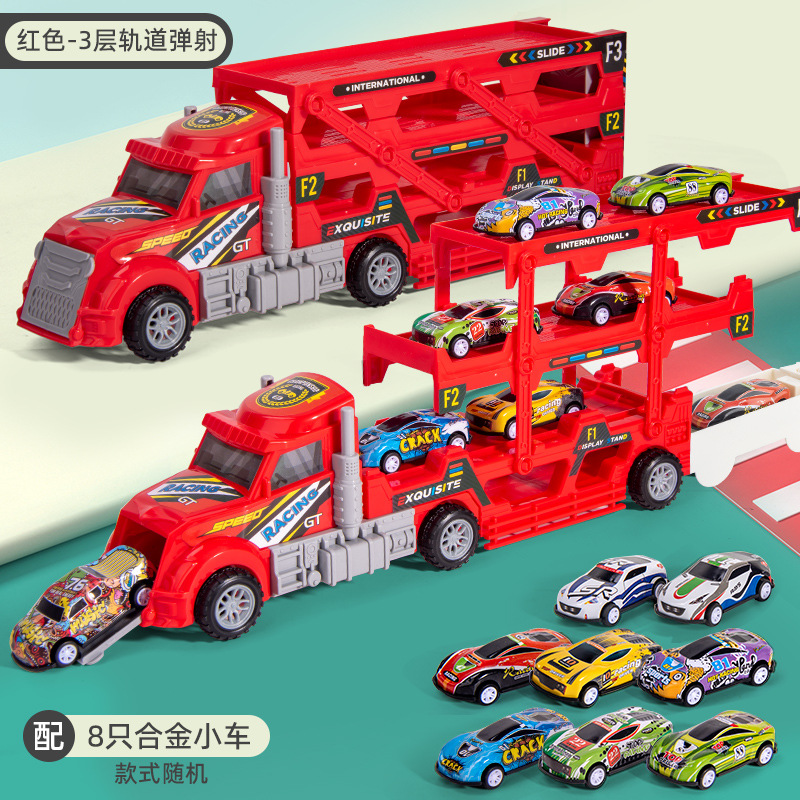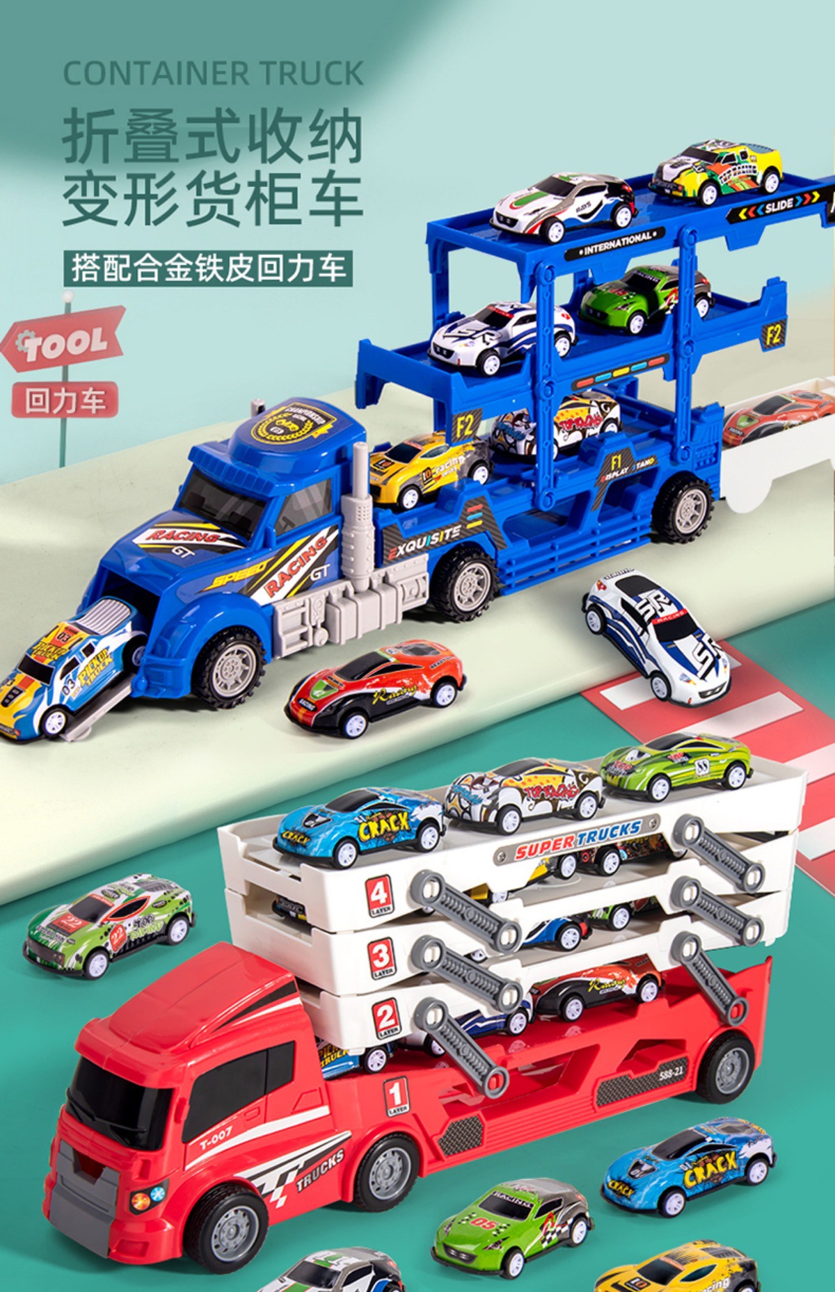 • 접이식 컨테이너 트럭 레드(풀백 트롤리 4개 포함) 이젝터 2색 혼합