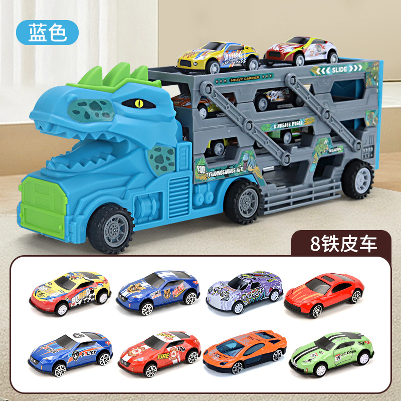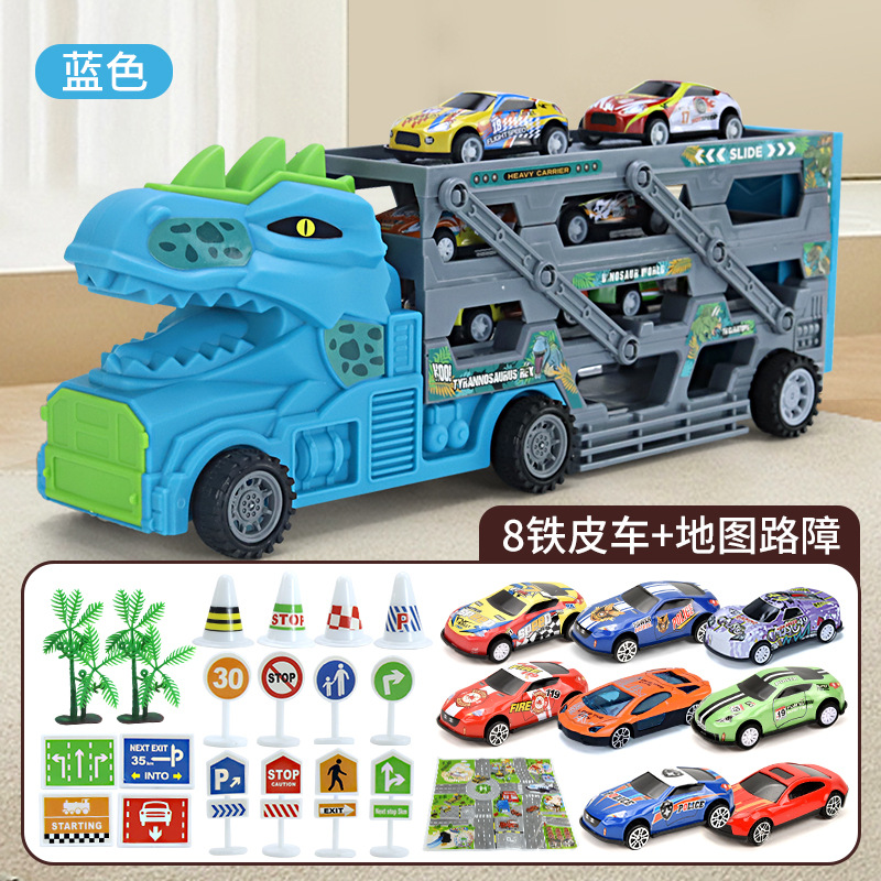 • 접이식 컨테이너 트럭 공룡 블루(풀백 트롤리 8개 포함)