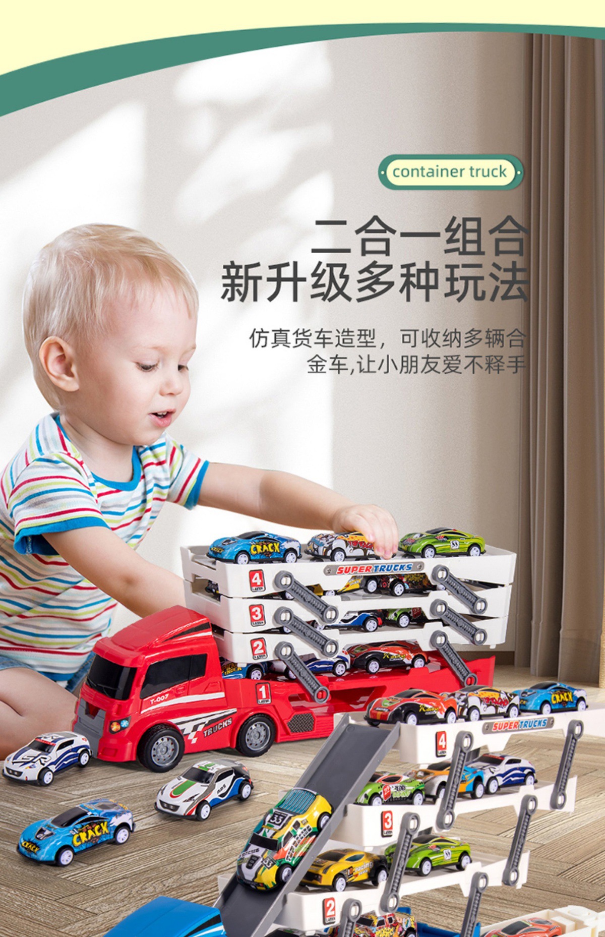 인증서가 있는 국경 간 어린이 장난감 이중층 슬라이딩 카트 리턴포워드 자동차 모델 소년용 자동차 장난감 트랙카스토어 가기