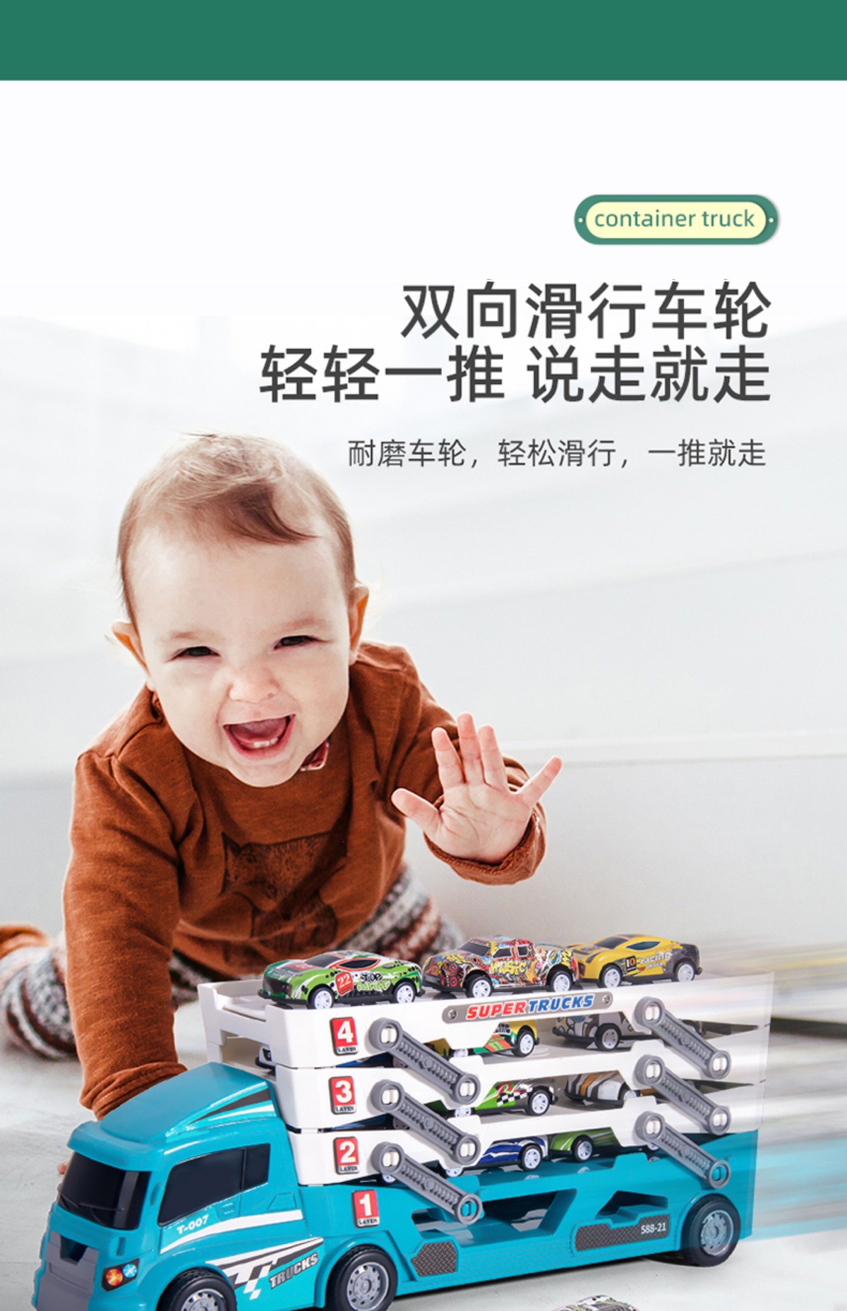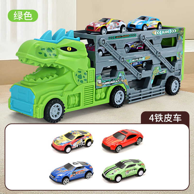 • 접이식 컨테이너 트럭 공룡 그린(풀백 트롤리 4개 포함)