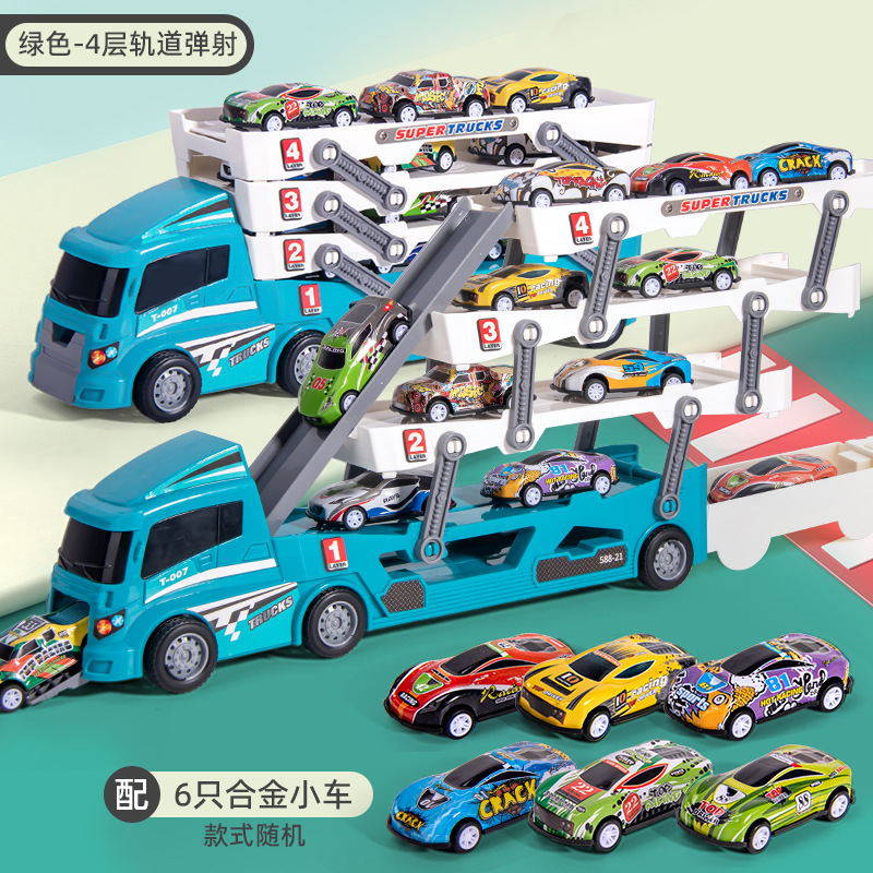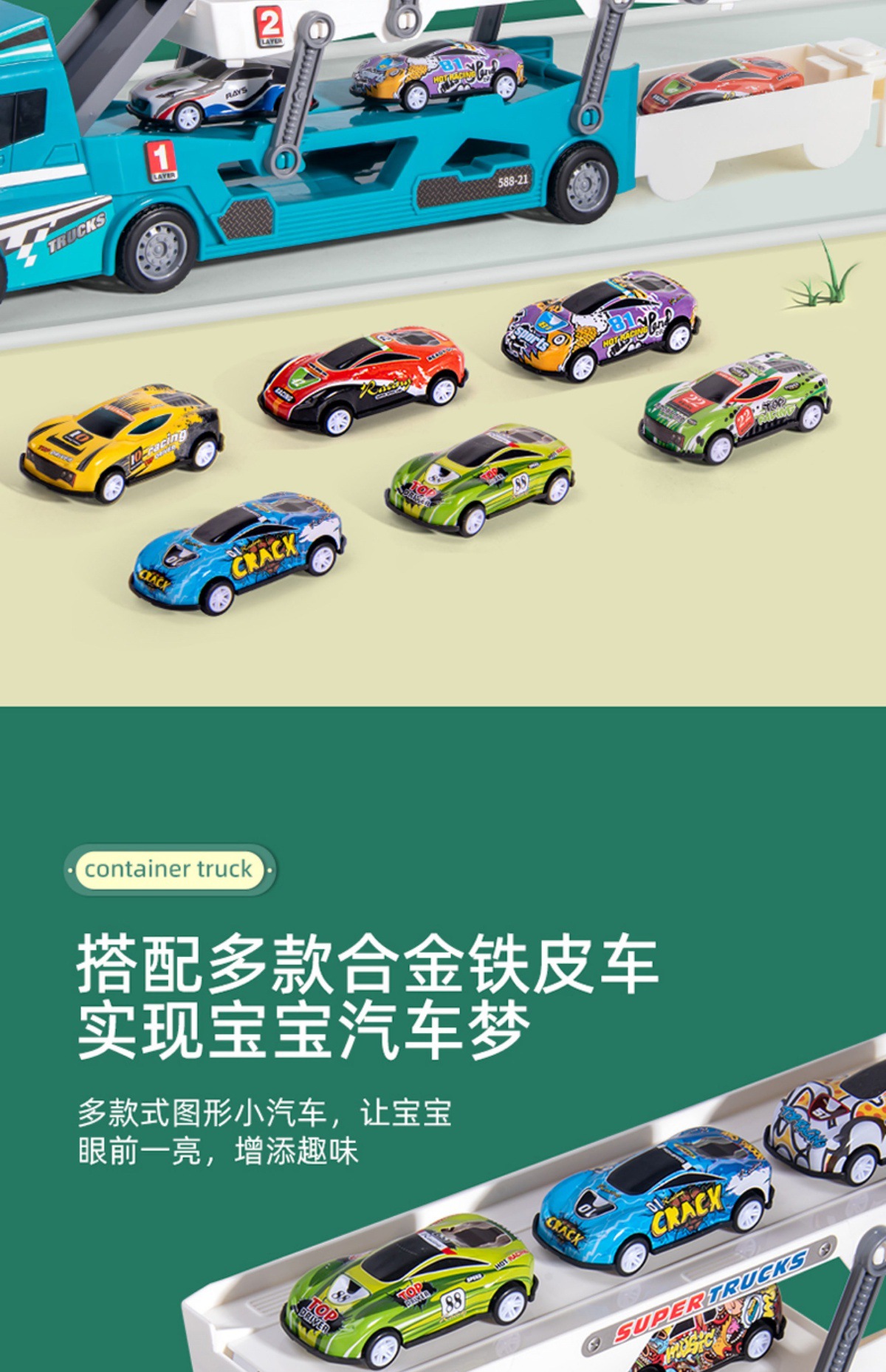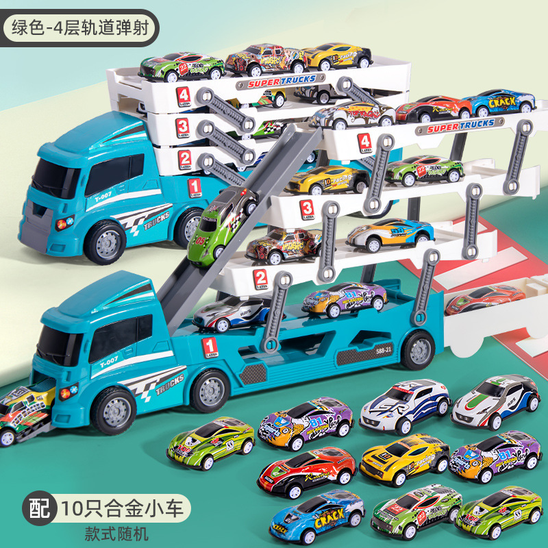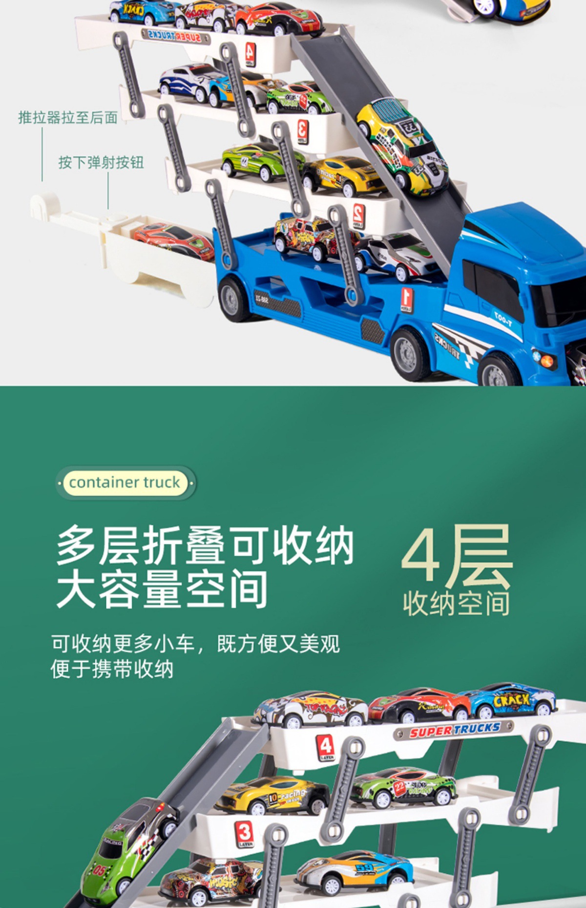 • 접이식 컨테이너 트럭 4층 초대형 녹색(트롤리 8개 + 지도 장애물 포함)