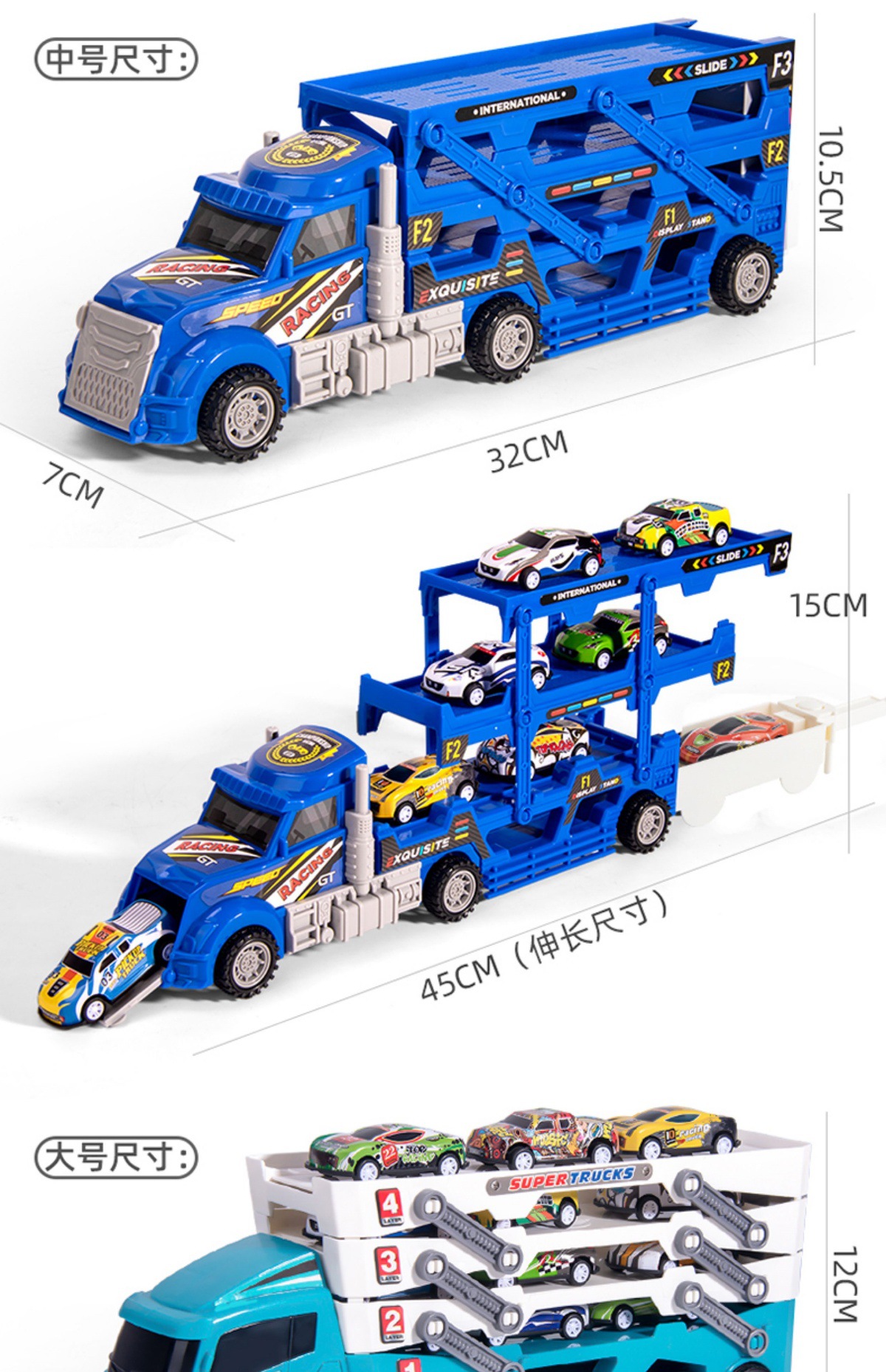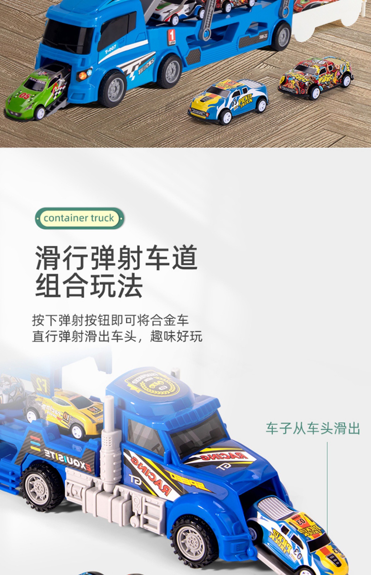 • 접이식 컨테이너 트럭 블루(풀백 트롤리 4개 포함) 투석기 2색 혼합