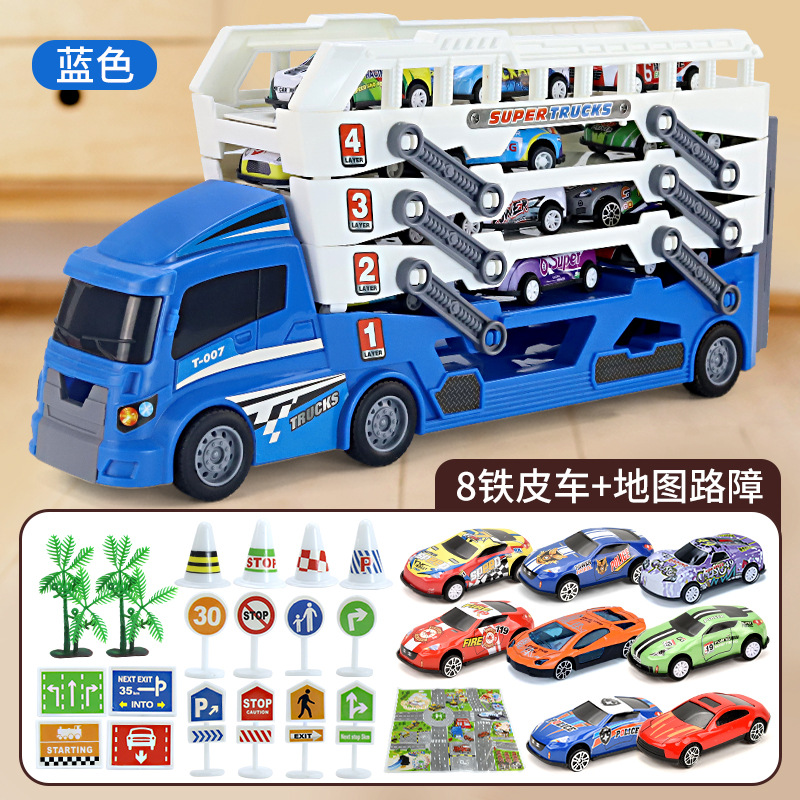 • 접이식 컨테이너 트럭 4단 특대형 블루(트롤리 8개 + 지도 장애물 포함)