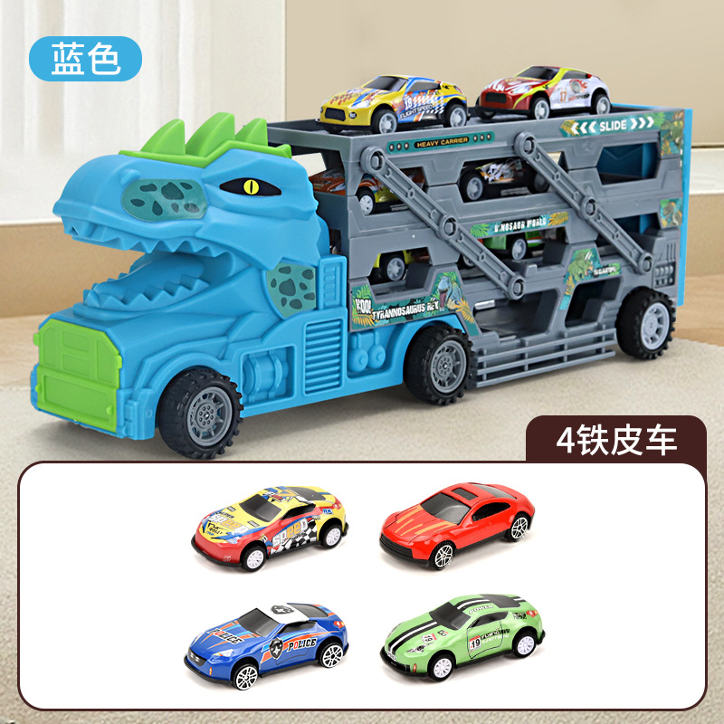 • 접이식 컨테이너 트럭 공룡 블루(풀백 트롤리 4개 포함)
