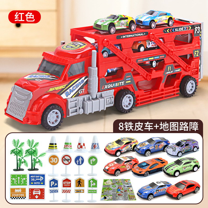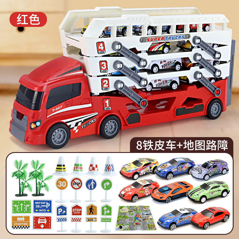 • 접이식 컨테이너 트럭 4단 특대형 레드(트롤리 8개 + 지도 장애물 포함)