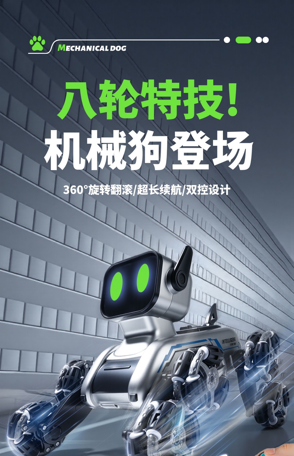 • 단일 제어 모델 - 8륜 스턴트 로봇 개 [리모컨 핸들 + 정교한 박스형]