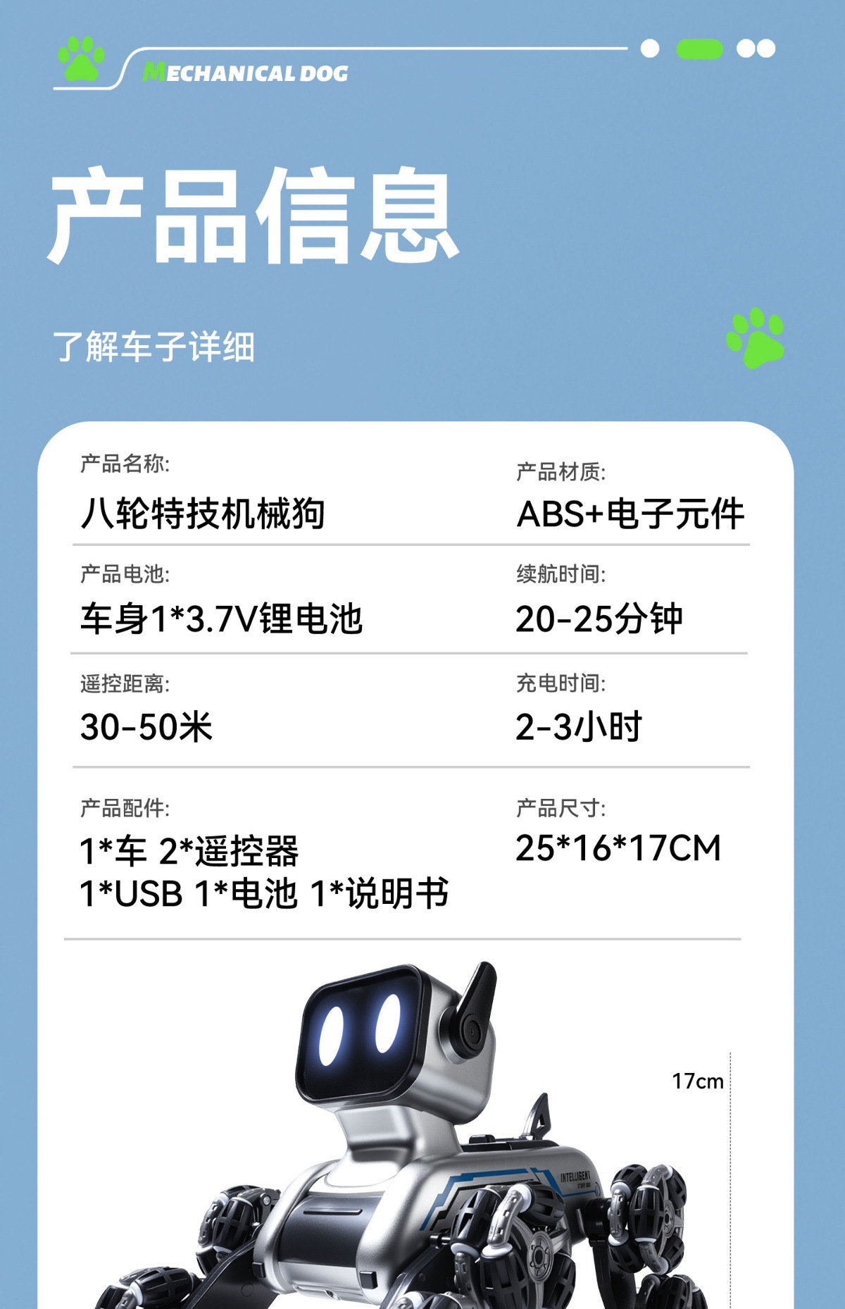 • 이중 제어 모델 - 8륜 스턴트 로봇 개 [리모컨 핸들 + 제스처 센서 시계 리모컨 + 정교한 박스형]
