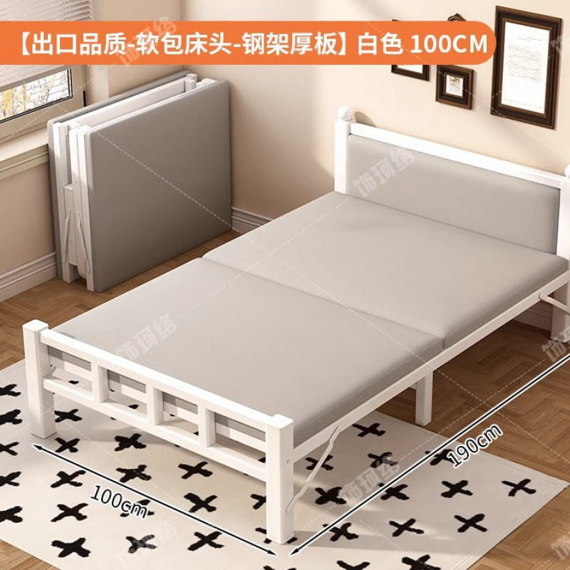 접이식 침대 가정용 싱글 침대 간단한 점심 시간 유아용 침대 휴대용 1.0m 성인 기숙사 추가 침대 더블 하드 보드 철 도금