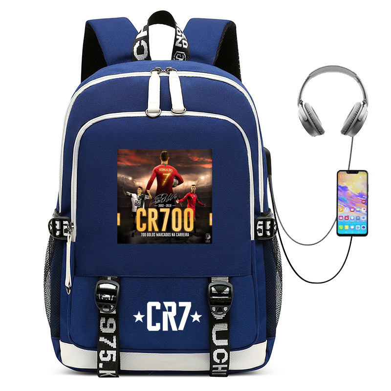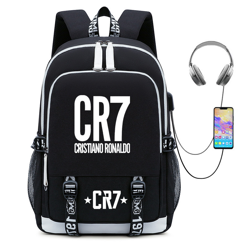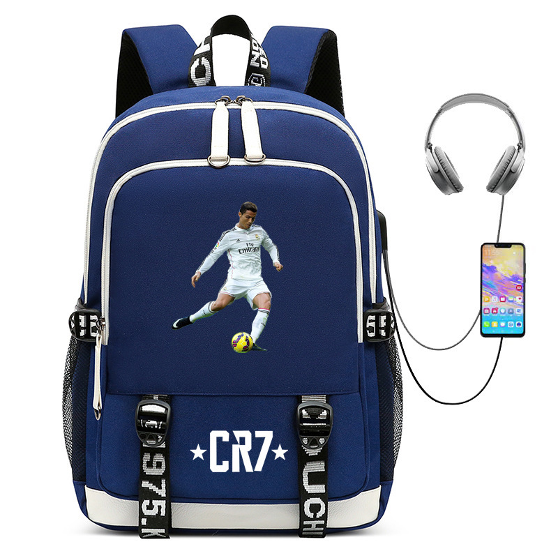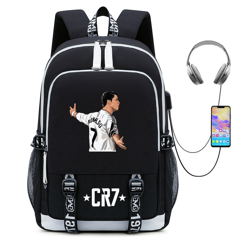 청소년, 초등 및 중등 학생을 위한 뜨거운 판매 축구 스타 호날두 컬렉션 학교 가방 USB 남성 및 여성 캐주얼 배낭스토어 가기
