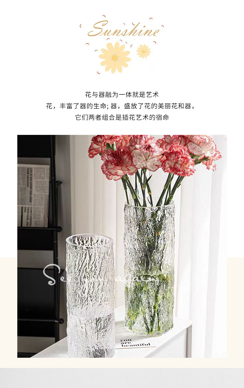 거실 테이블 장식 심플 유리 꽃병 투명 수경 재배 부자대나무 꽃 장미 대구경 꽃병 장식품스토어 가기