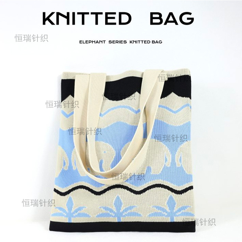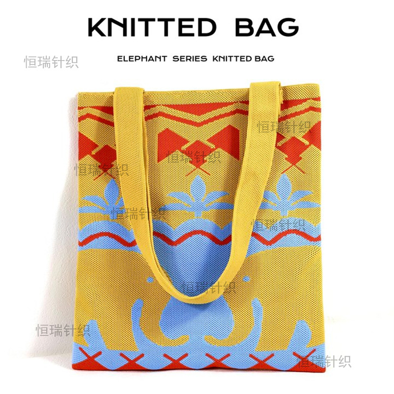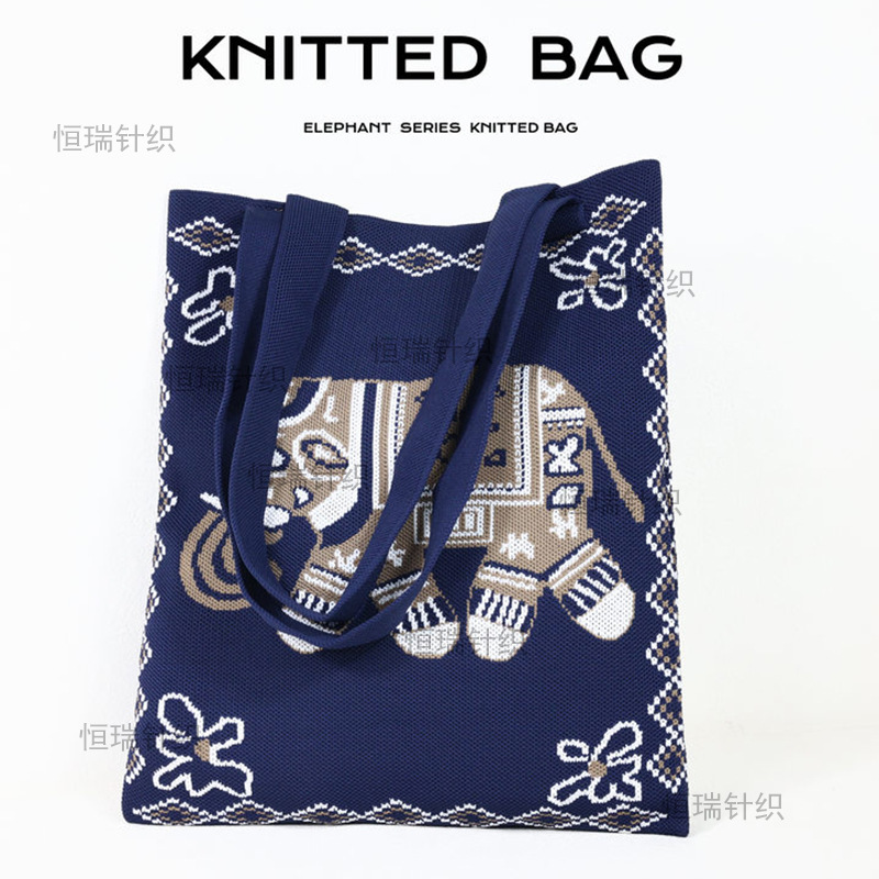 민족 스타일 코끼리 Xishuangbanna 니트 가방 아마존 대외 무역 인기 ins 스타일 만화 귀여운 색상 매칭 대형 가방스토어 가기