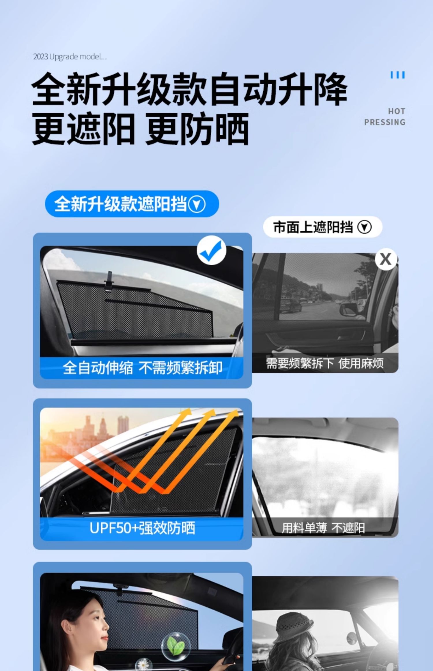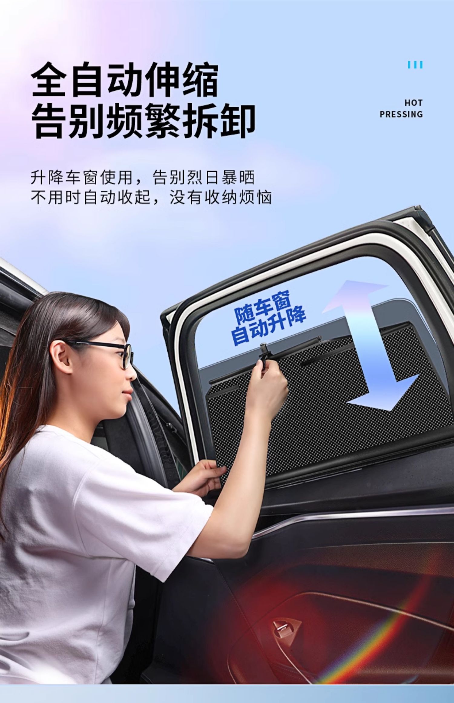 자동차 창 차양, 자동 리프팅 측면 창 차양, 자외선 차단 및 단열, 자동차용 접이식 개인 정보 보호 커튼