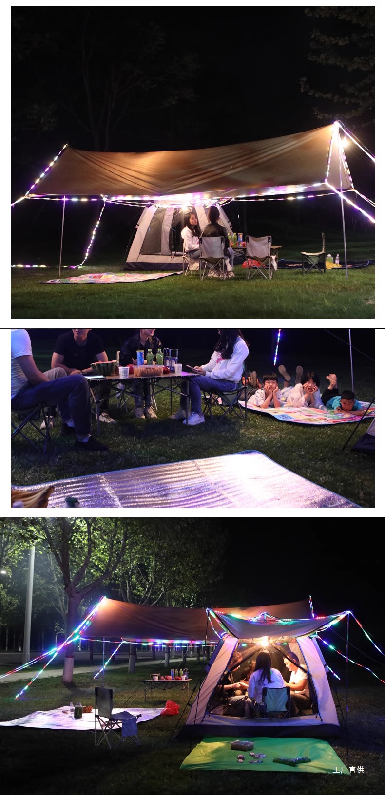 실버 코팅 캠핑 텐트가 포함된 대형 자외선 차단제 천막 두꺼운 4개의 폴 캐노피 비닐 야외 야외 휴대용