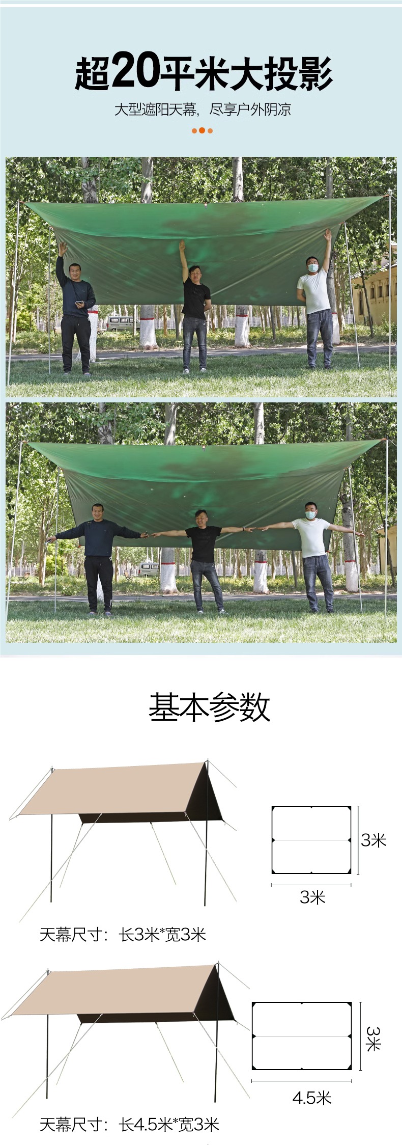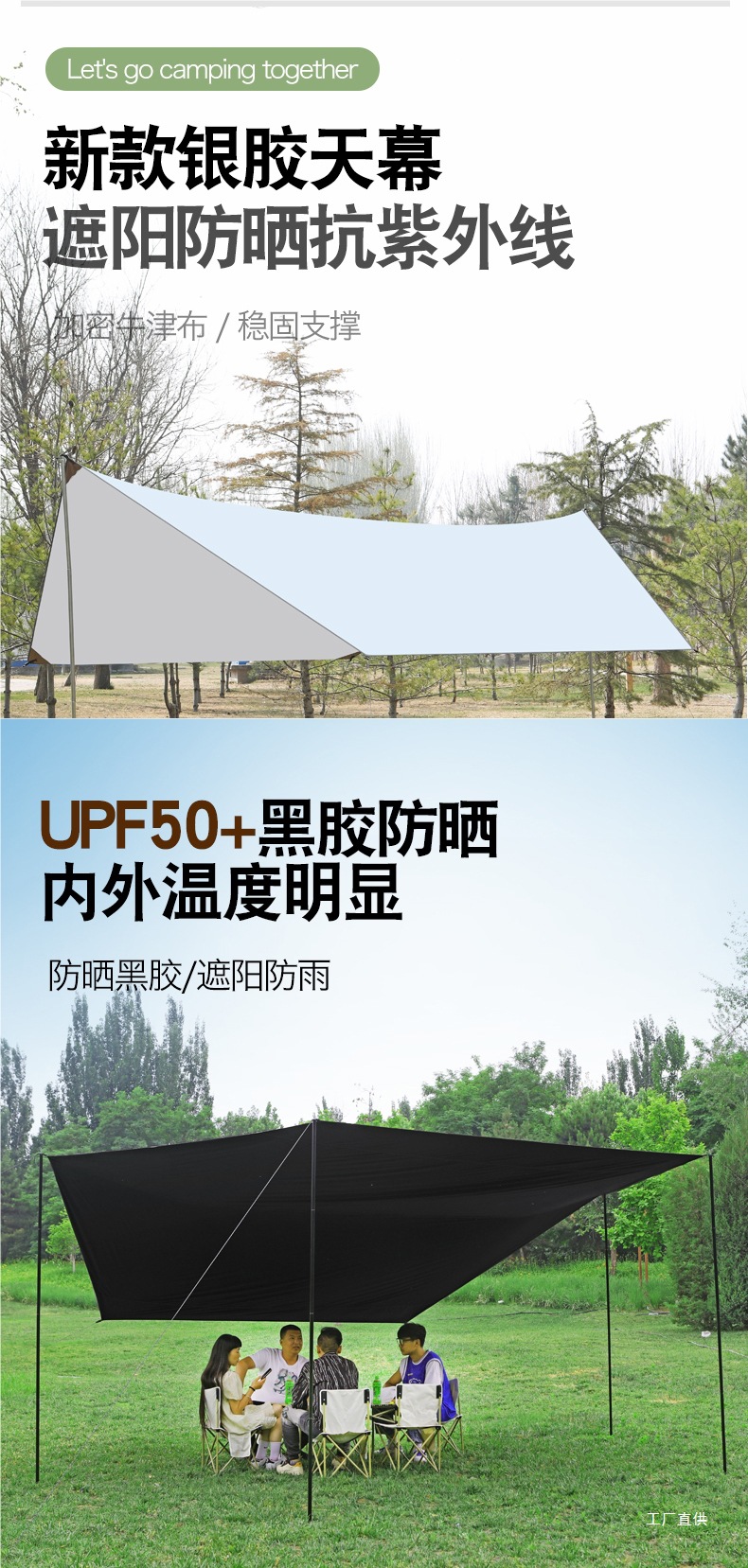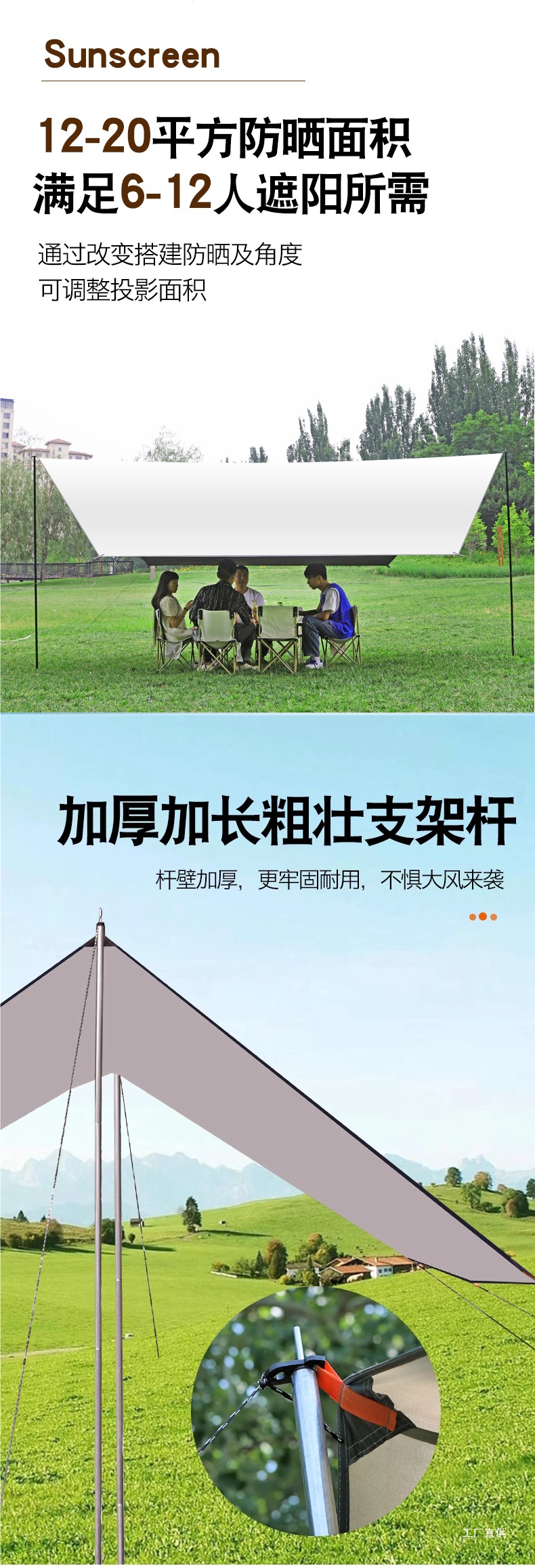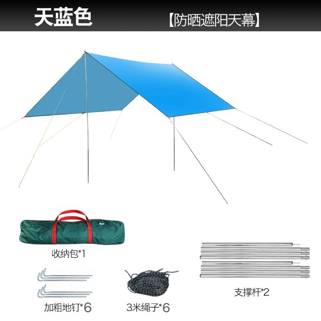 실버 코팅 캠핑 텐트가 포함된 대형 자외선 차단제 천막 두꺼운 4개의 폴 캐노피 비닐 야외 야외 휴대용스토어 가기