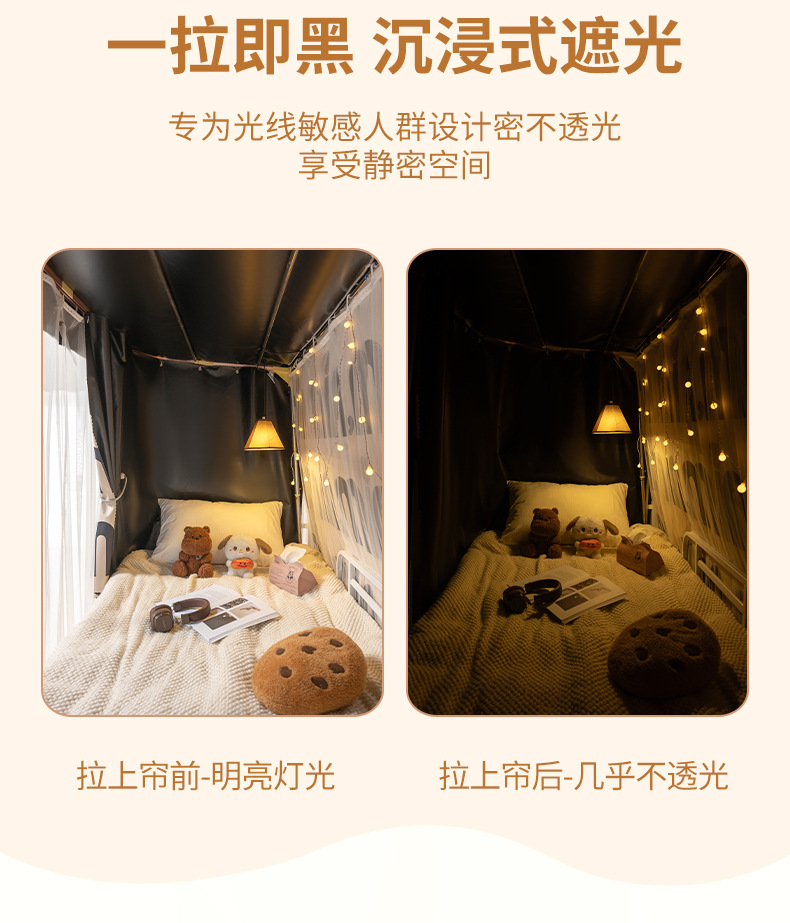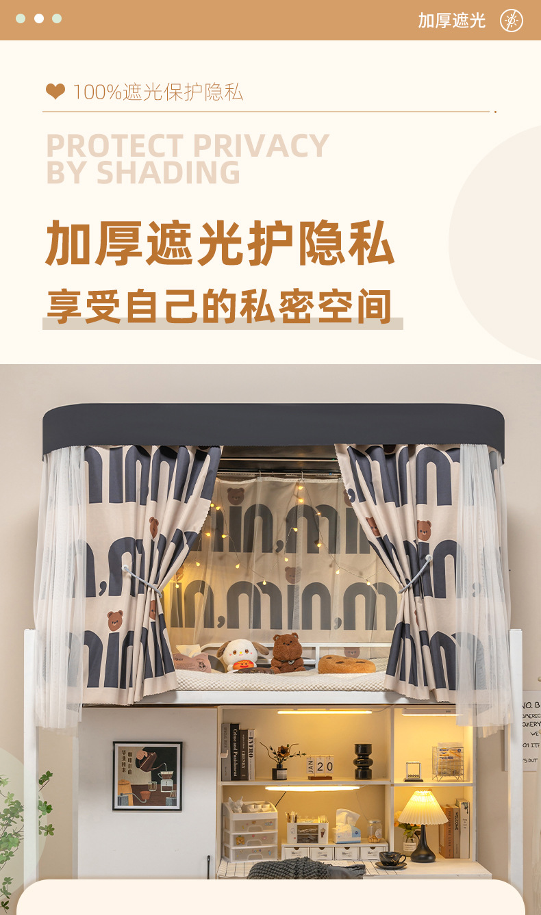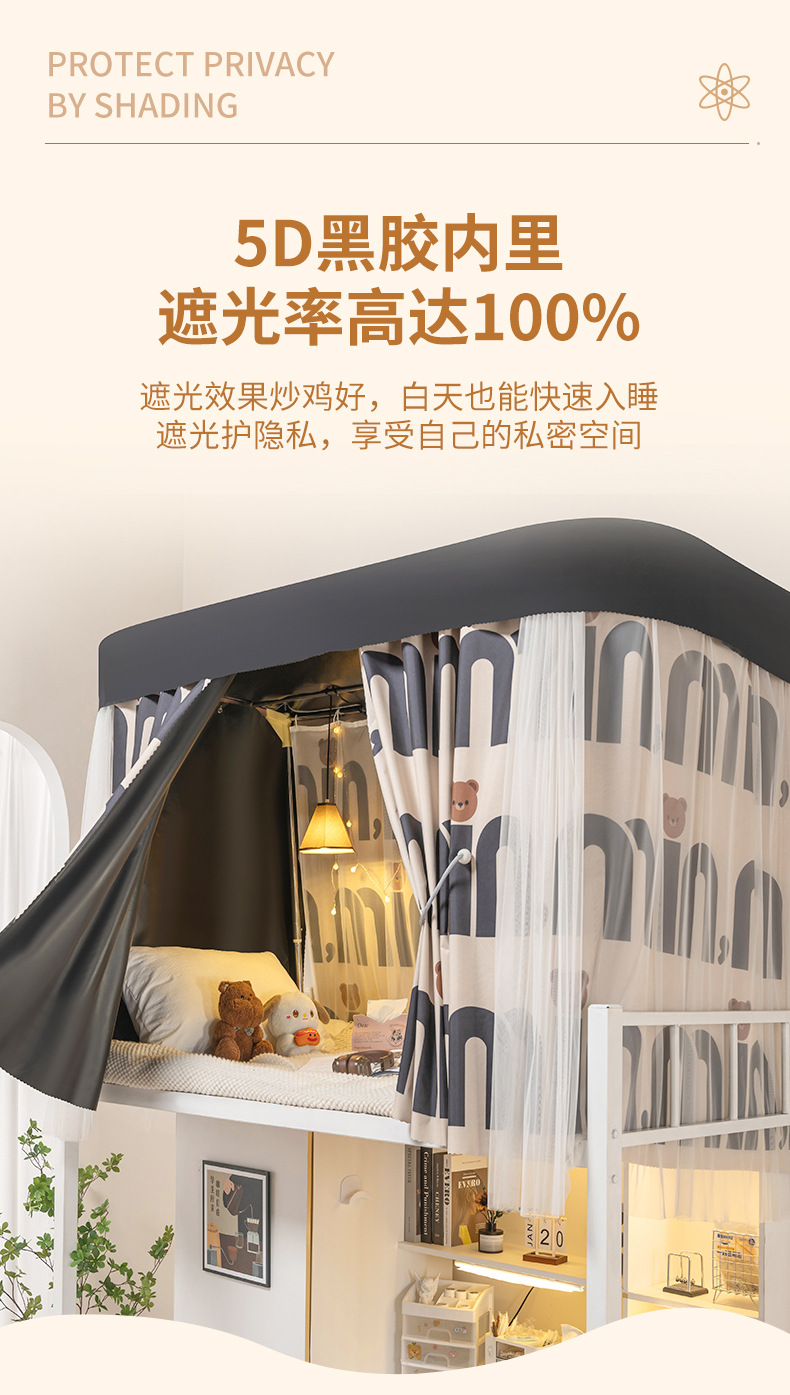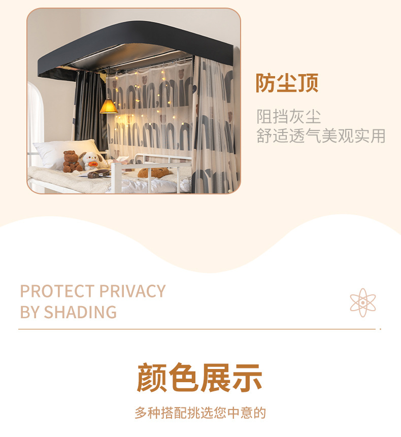 U자형 이중 슬라이드 트랙 학생용 강력 차광 침대 커튼 기숙사 모기장 일체형 상층 침실 U자형 커튼