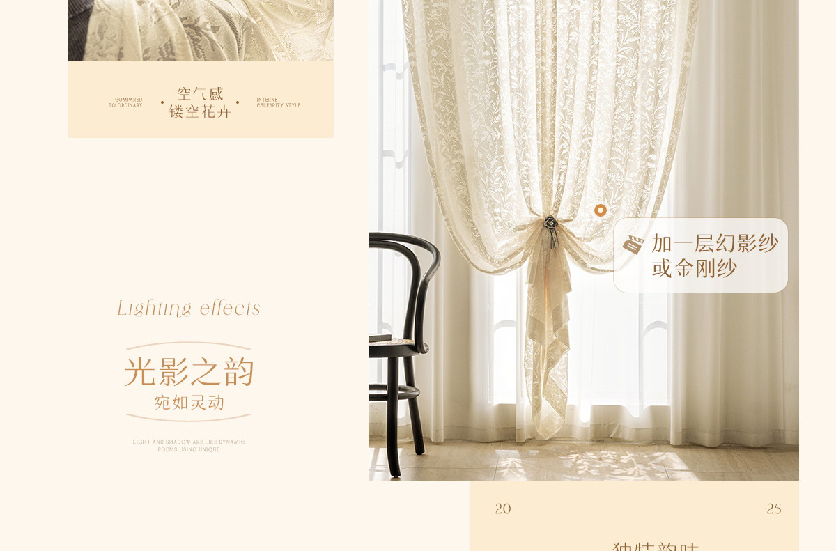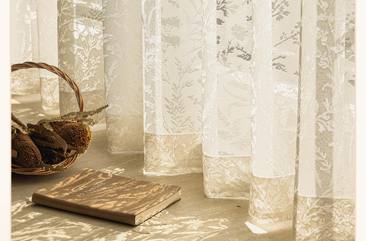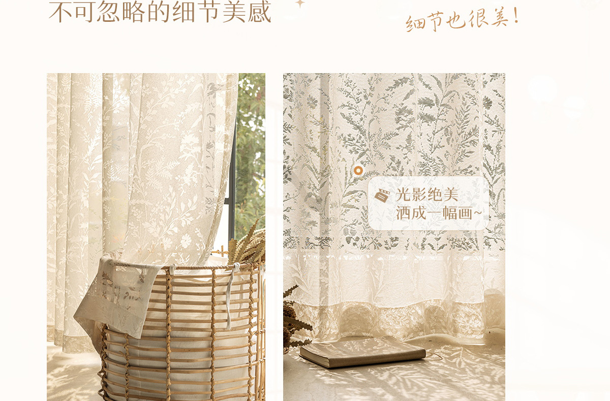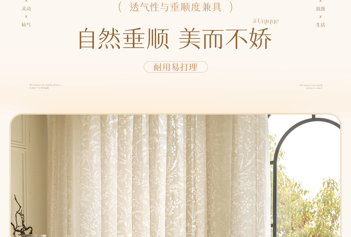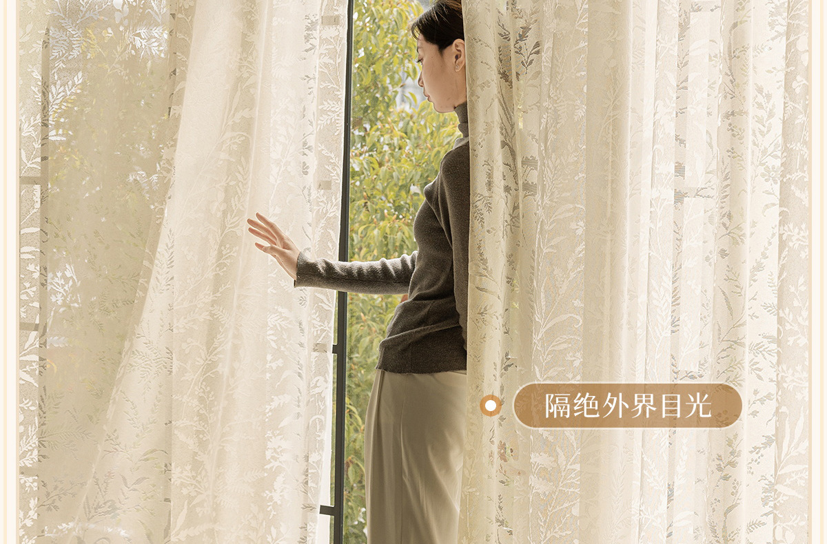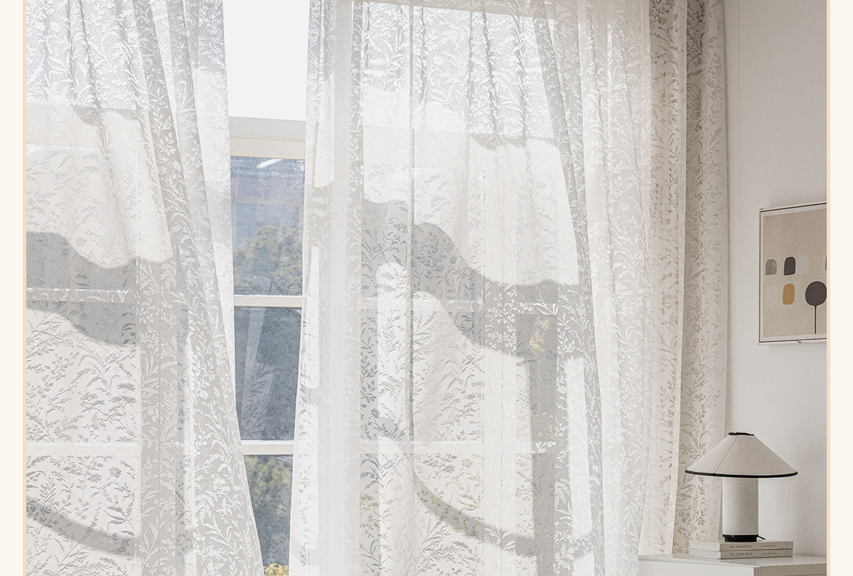 Wow 맞춤형 오리지널 Moon Branch Shadow 프랑스어 중공 반투명 거즈 커튼 새로운 자외선 차단제 거실 발코니 창 스크린