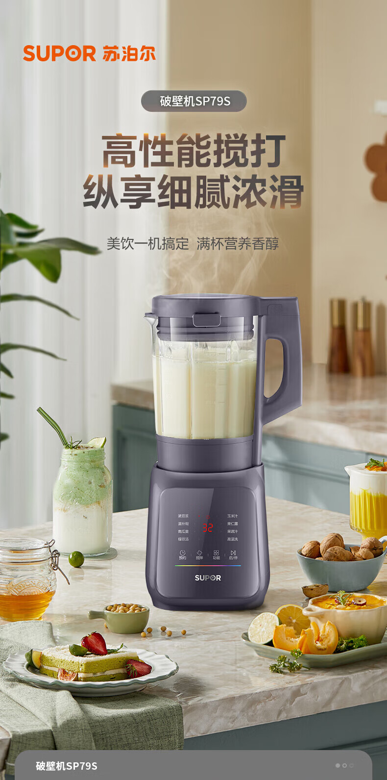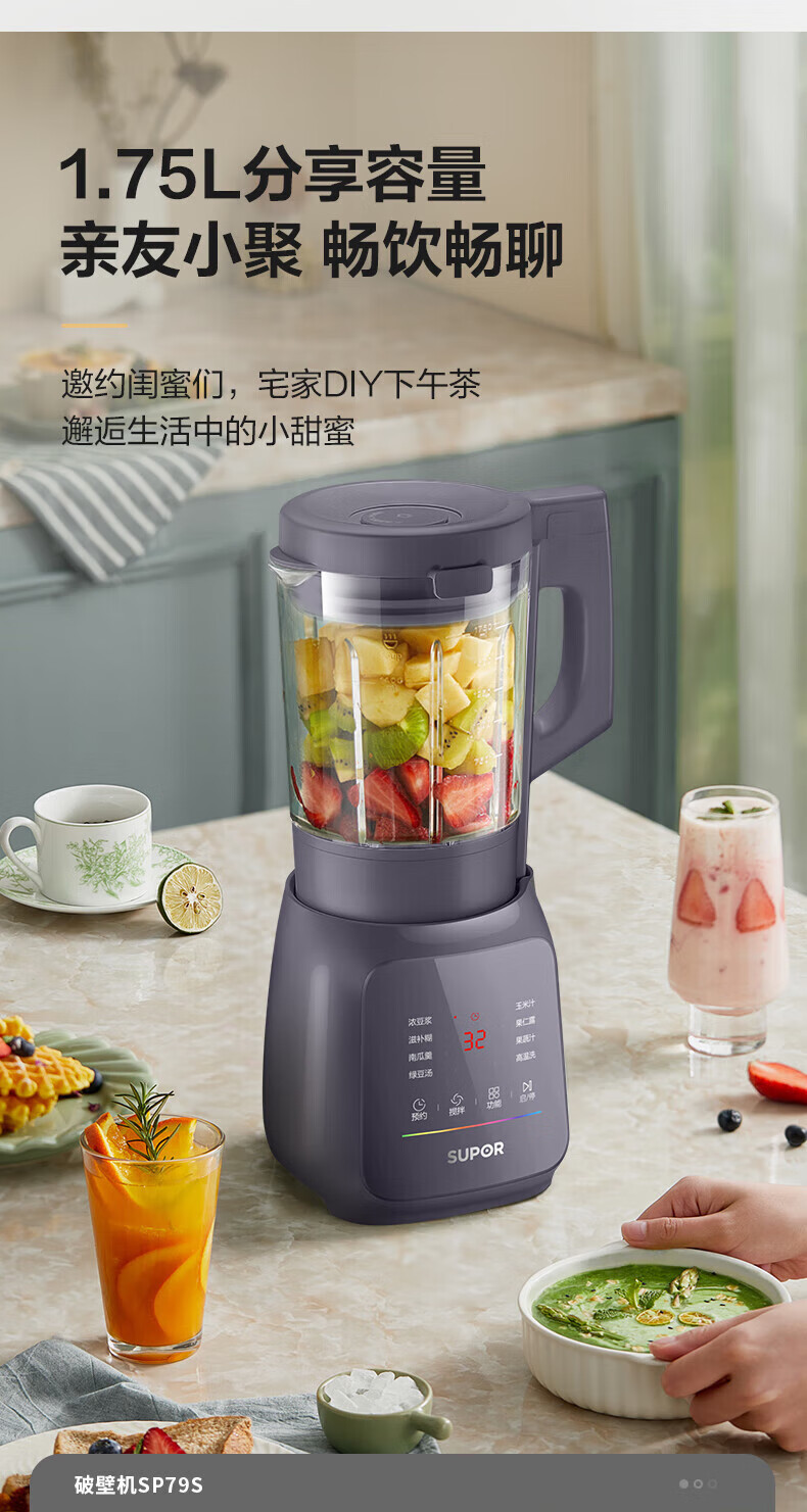Supor 벽 파괴 기계 1.75L 대용량 다기능 벽 파괴 기계 소음 감소 예약 가열 두유 기계 SP79S