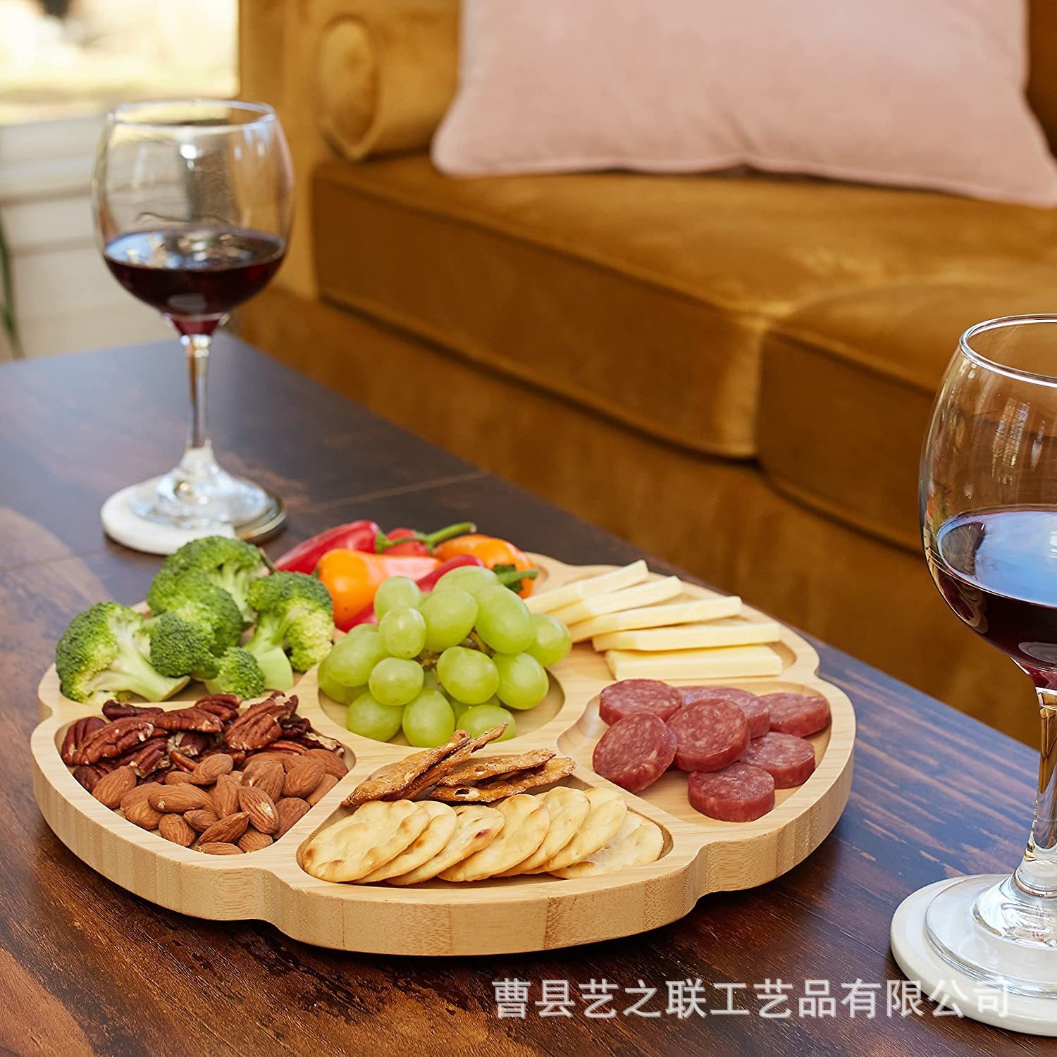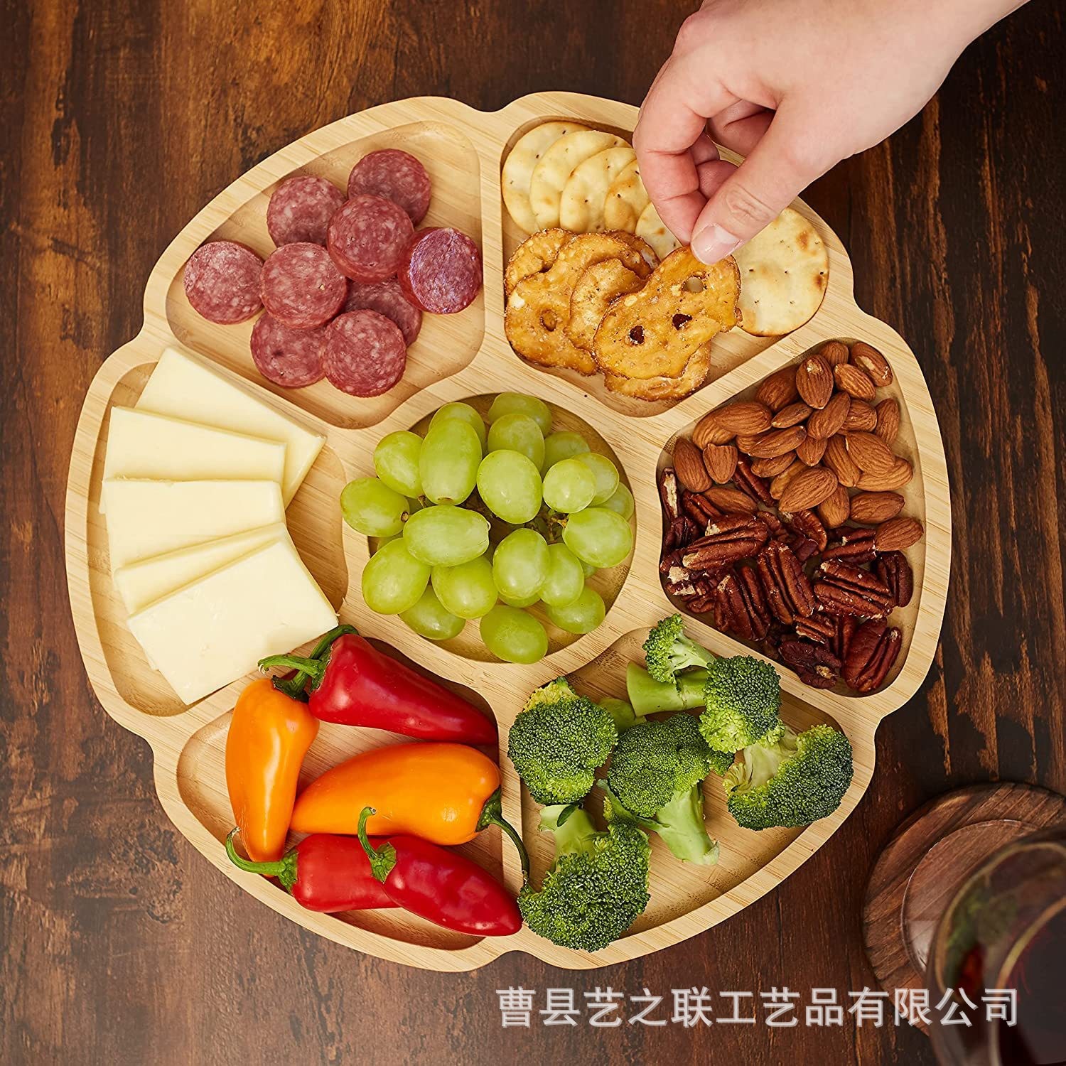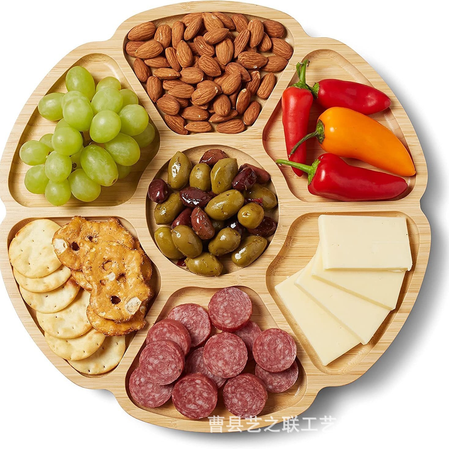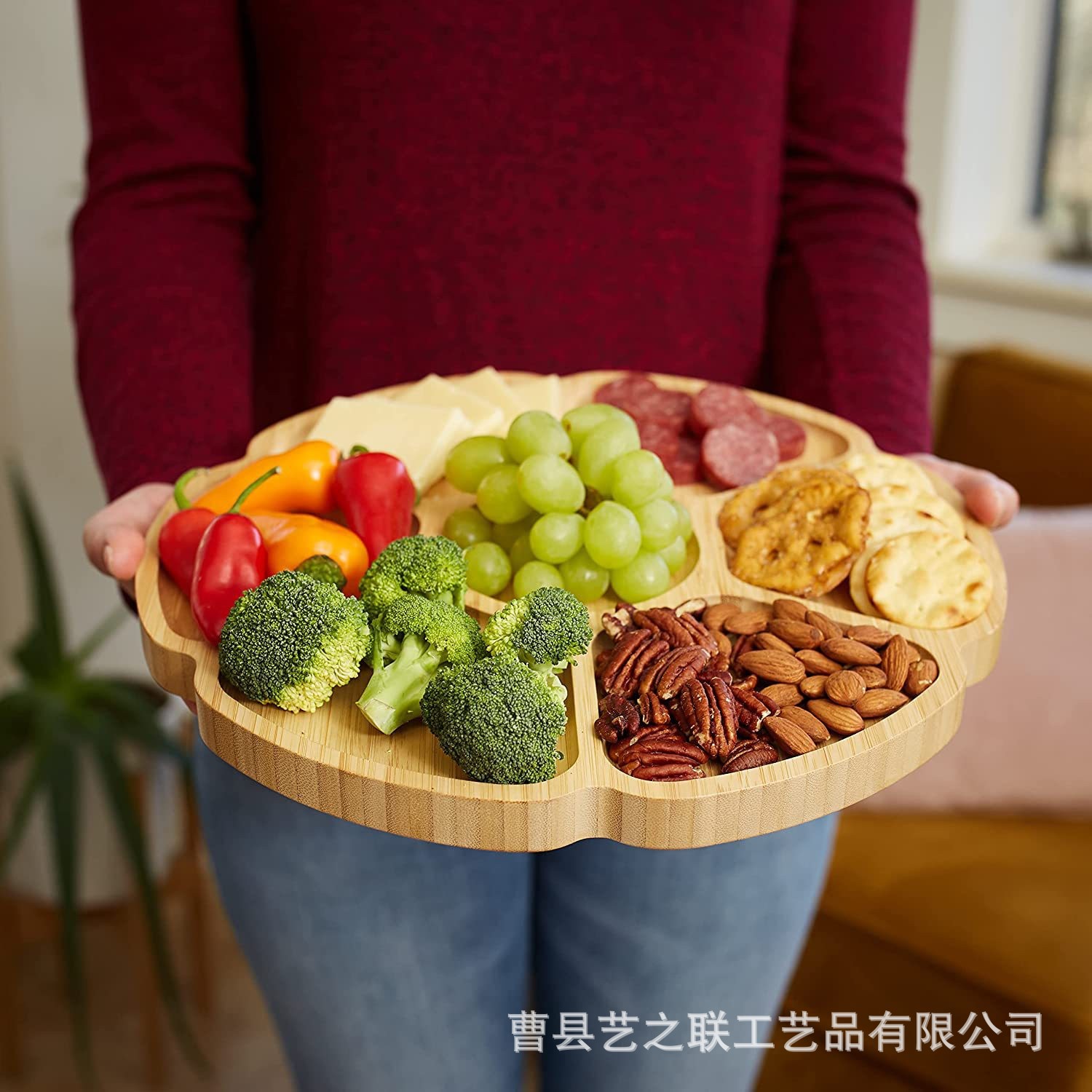 대나무 꽃 모양 회전식 트레이 단단한 나무 거실 분할 건조 과일 트레이 파티 파티 과일 스낵 트레이
