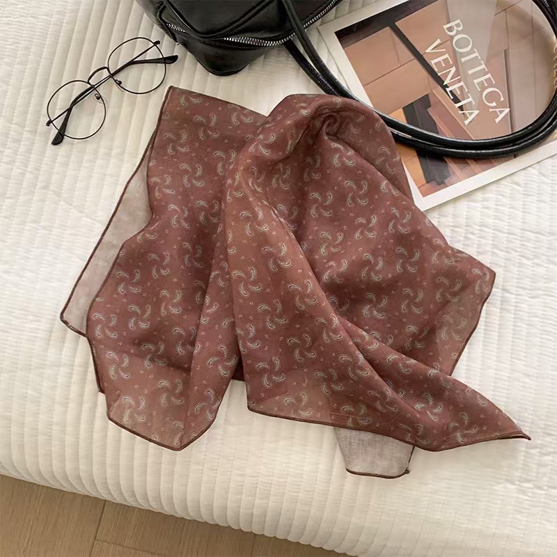 58 면 및 린넨 작은 사각형 스카프, 신선하고 통기성이 있는 여성용 부드러운 예술적 장식 작은 실크 스카프, 여름 스카프, 여성용 다용도 작은 스카프