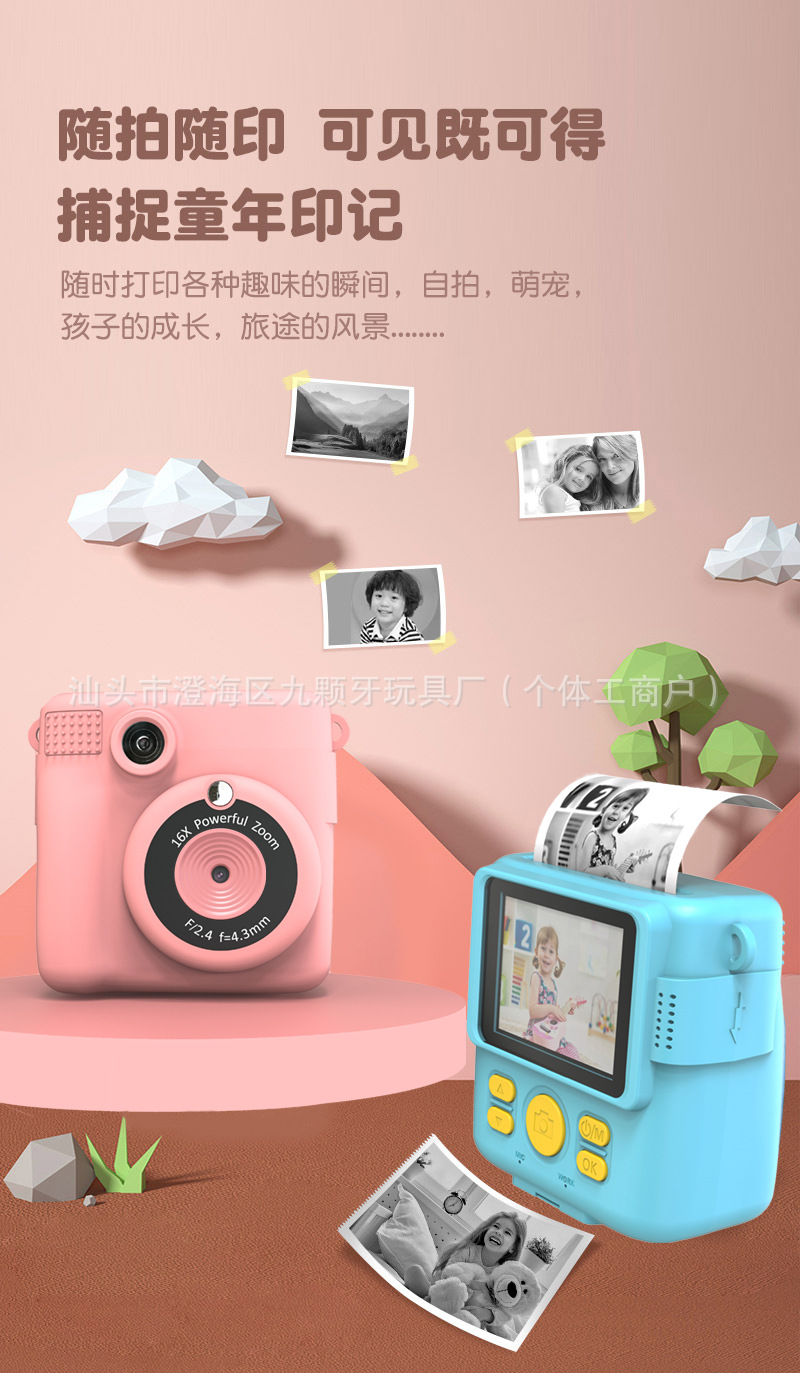 폴라로이드 어린이 카메라 인쇄 카메라 만화 스마트 장난감 DIY HD 미니 SLR 카메라 선물스토어 가기