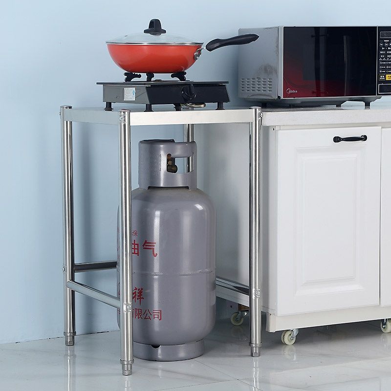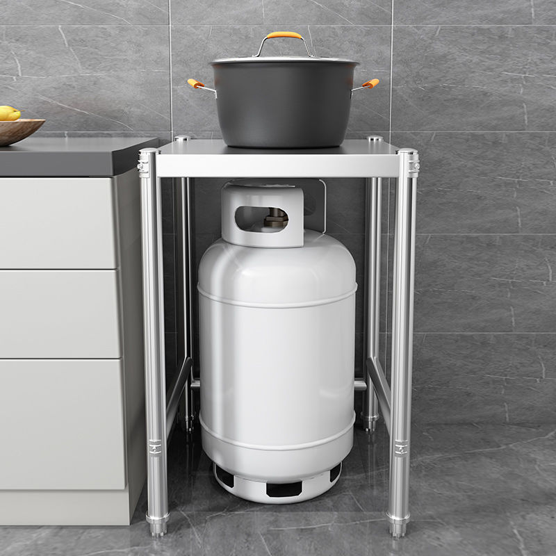 주방 스테인레스 스틸 스토리지 랙 사각형 단일 가스 더블 스토브 홈 스토리지 브래킷 단일 레이어 가스 탱크 랙스토어 가기