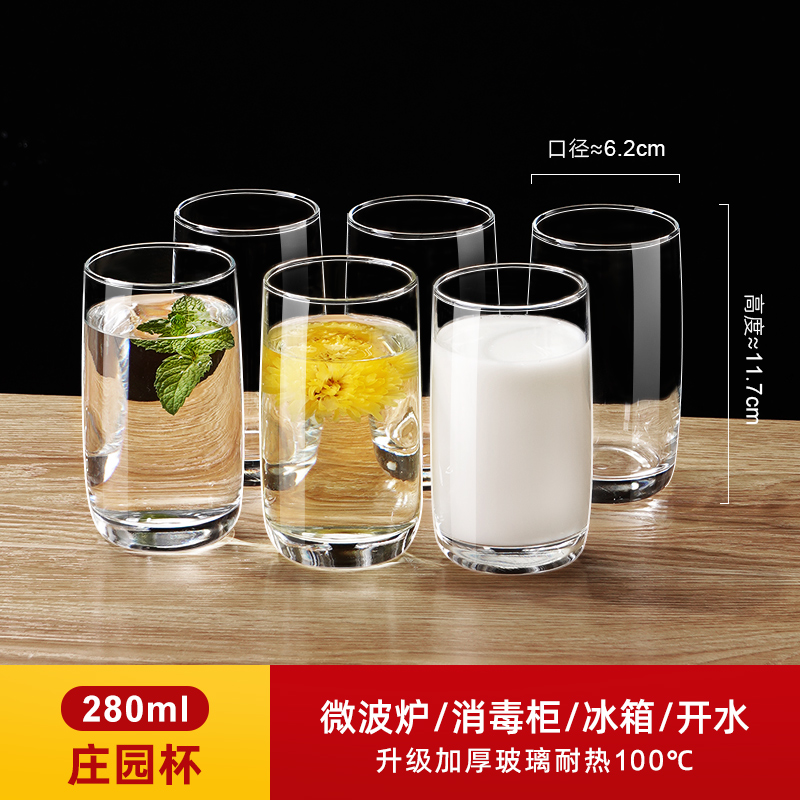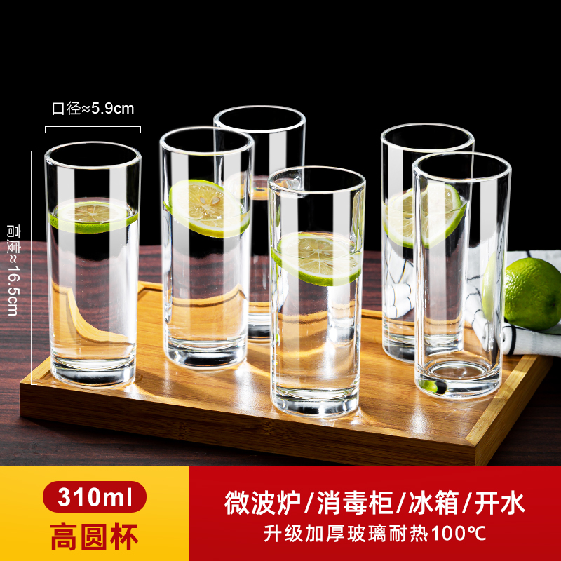 두꺼운 내열 유리 물컵 6팩, 가정용 투명 식수 찻잔, 맥주 및 주류 컵 세트