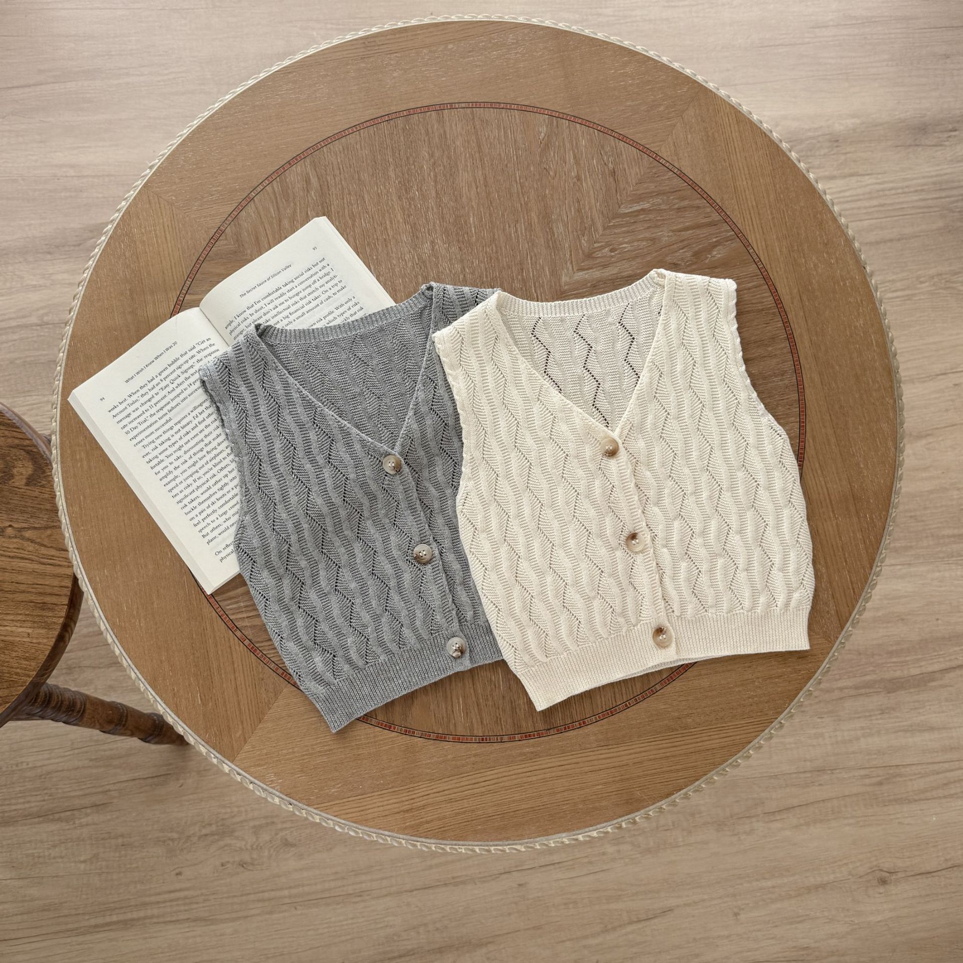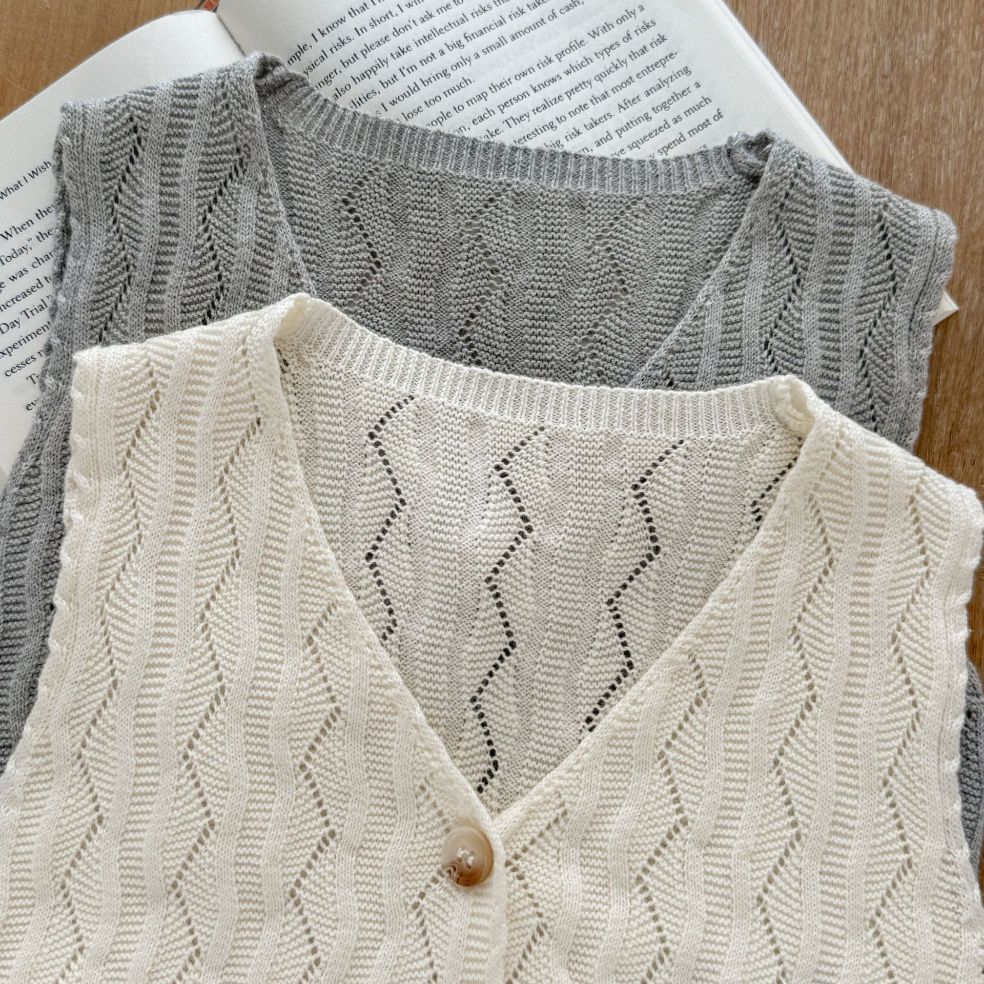 남녀 아기용 니트 조끼 가디건, 봄, 가을 아우터, 스타일리시하고 패셔너블한 속이 비치는 얇은 스웨터 조끼스토어 가기