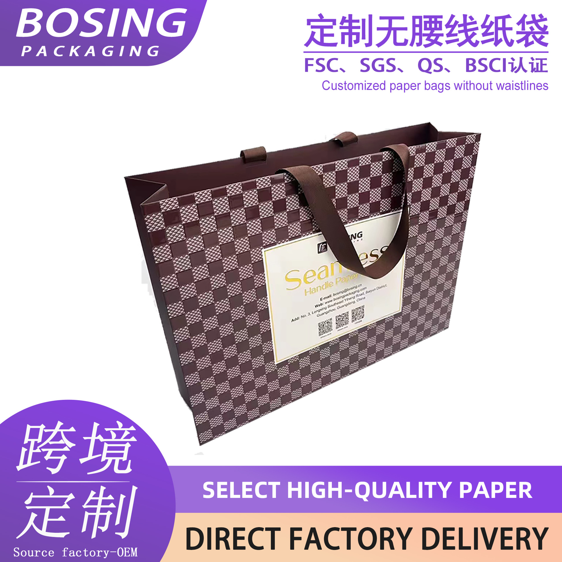 맞춤형 고급 선물 가방, 의류 포장 가방, 허리 라인이 없는 핸드백, 로고가 인쇄된 맞춤형 흰색 크래프트 종이 가방