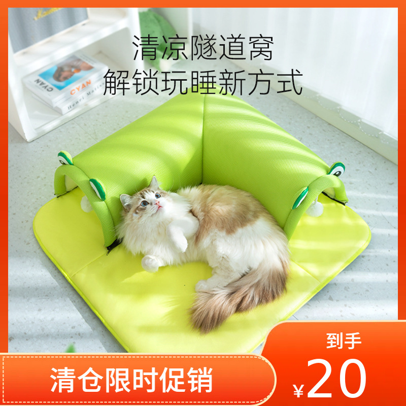 고양이 둥지, 여름 고양이 터널, 고양이 피난처, 고양이 침대, 탈부착 및 세탁 가능한 고양이 매트, 개집, 사계절 애완동물 용품스토어 가기