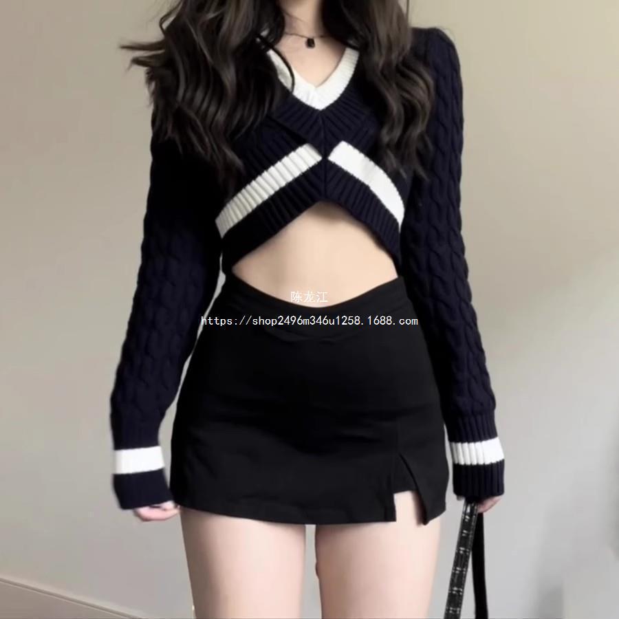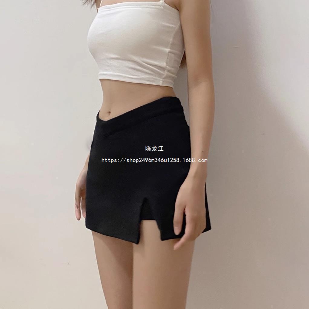 힙 커버 숏 스커트 아메리칸 스타일 2024 팬츠 스커트 초짧은 V자 핫걸 슬릿 다용도 A라인 봄 여성 허리 노출 APEA스토어 가기