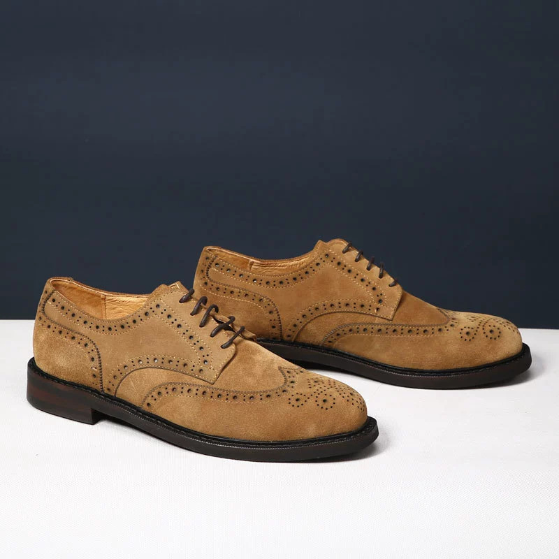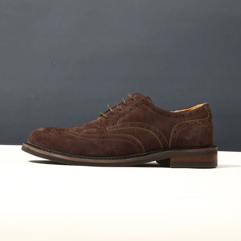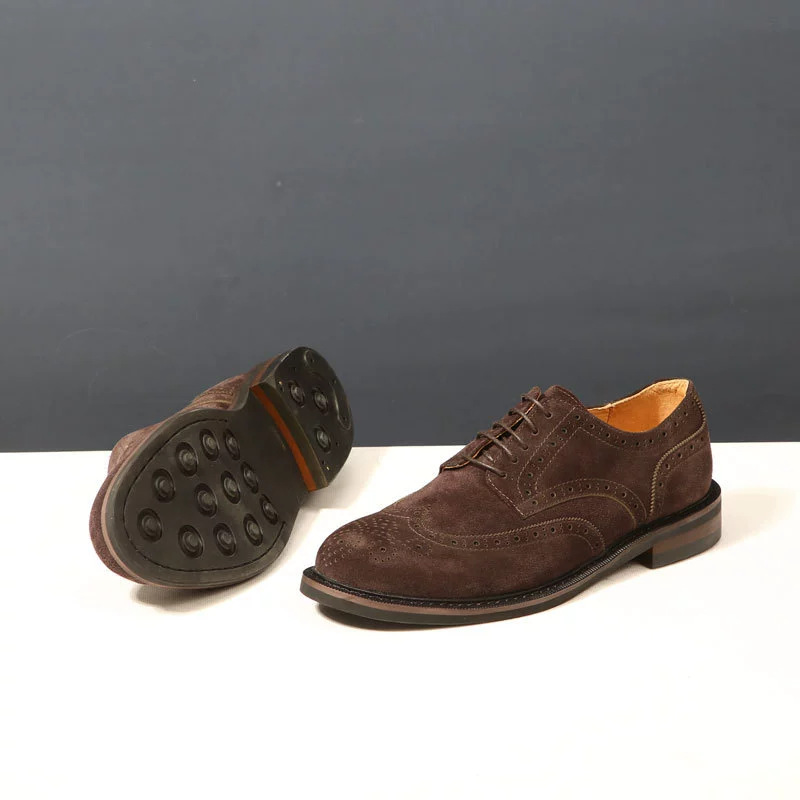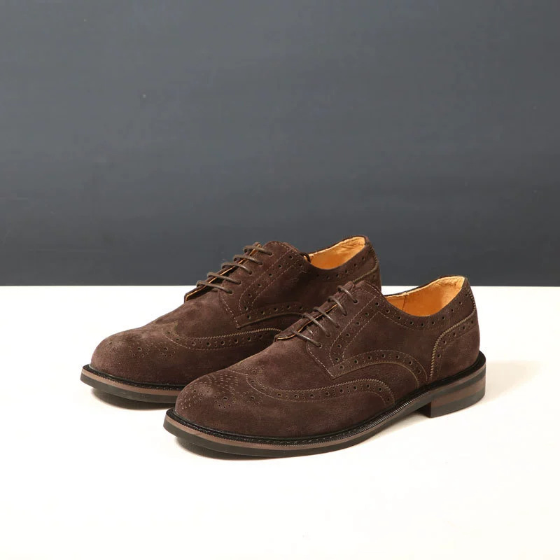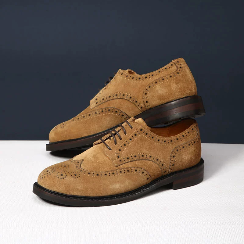 대외 무역 복고풍 수제 브로그 조각 더비 신발 남성 캐주얼 가죽 신발 스웨이드 가죽 영국 비즈니스 남성 신발