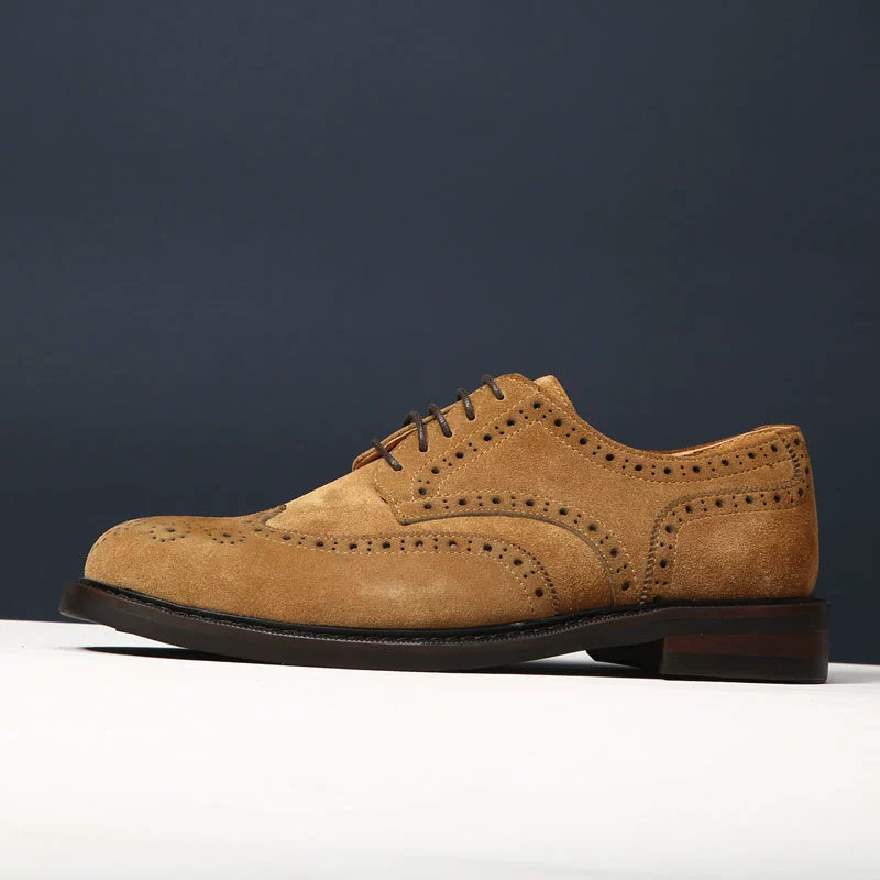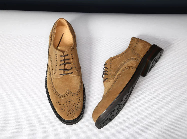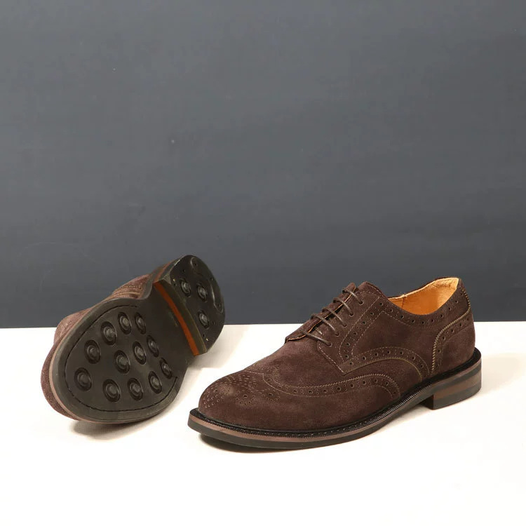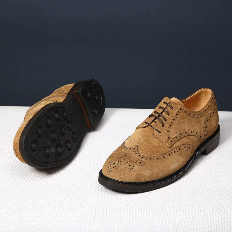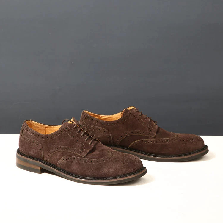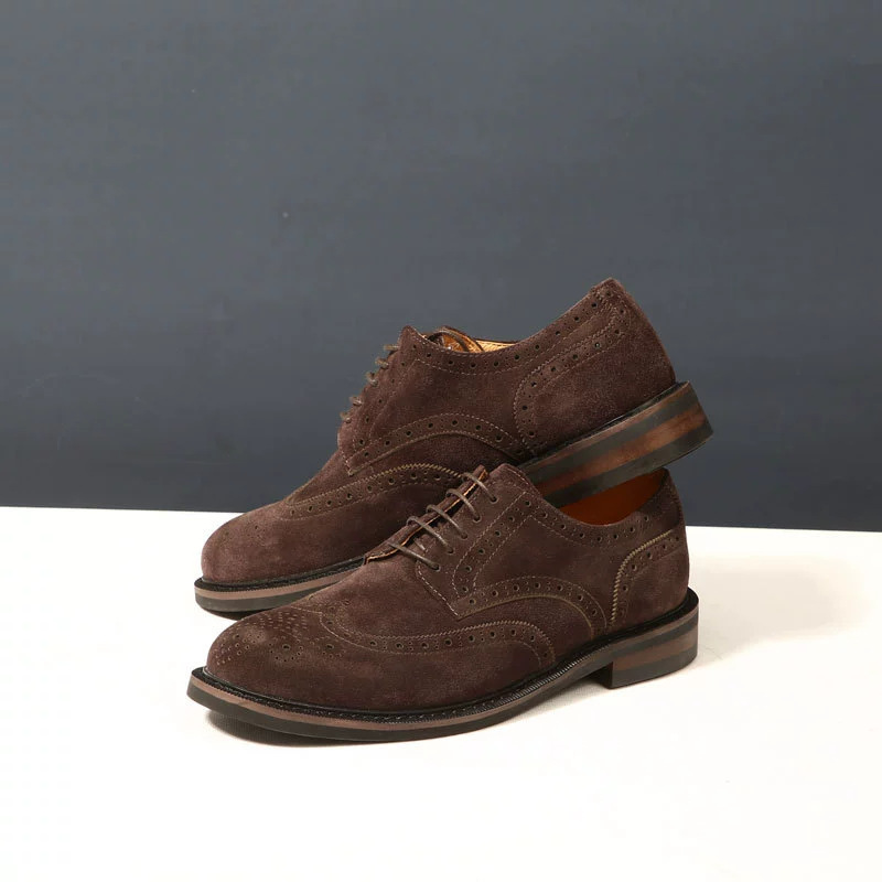 대외 무역 복고풍 수제 브로그 조각 더비 신발 남성 캐주얼 가죽 신발 스웨이드 가죽 영국 비즈니스 남성 신발